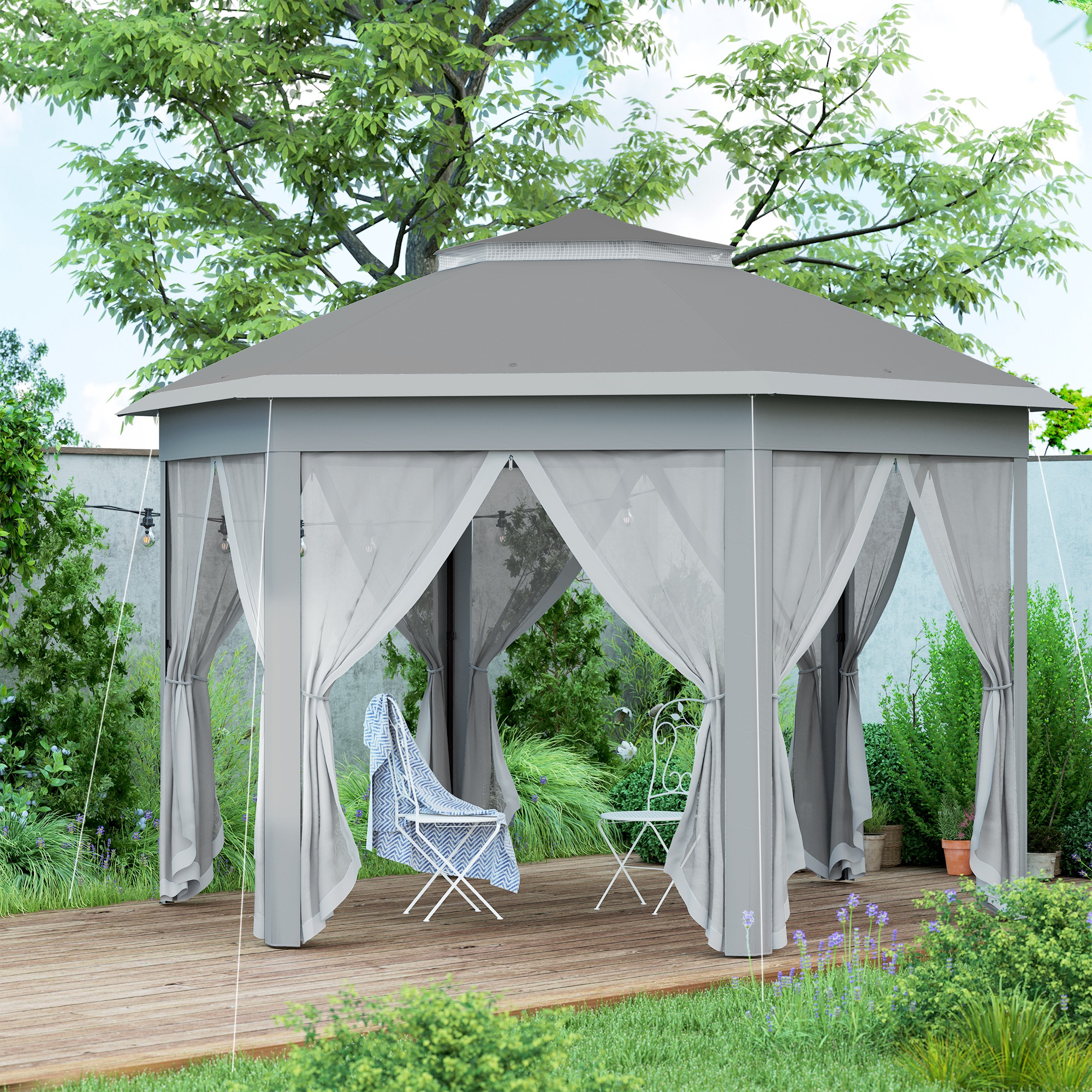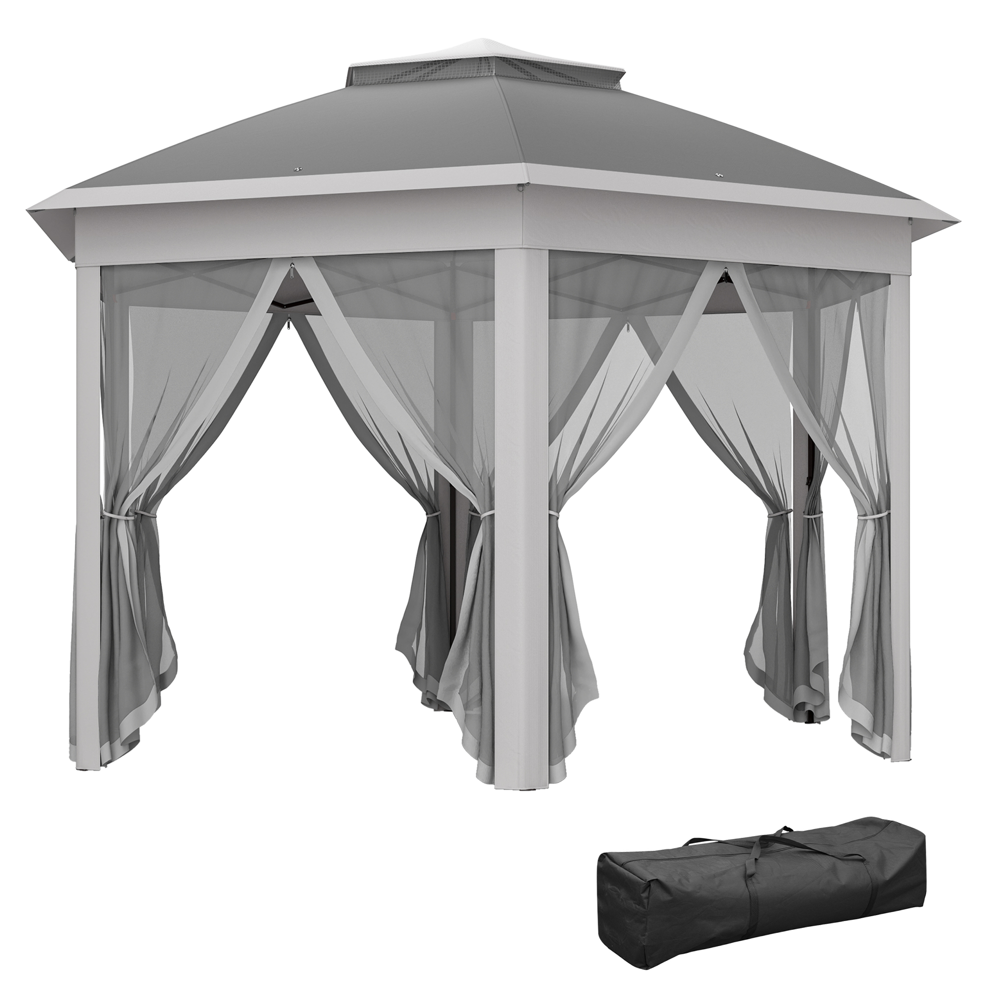 Sophistication has never been so easy to set up, thanks to this marquee gazebo with sides from Outsunny. Large 3 x 4 design, marquee tent provides plenty of shelter for guests, whether this hot tub canopy is for a BBQ, summer gathering or celebration party. A powder coated metal frame ensures this garden tent is tough and stands upright in an easy-to-assemble and fold-down design to save you time and effort. Our camping gazebo features mesh curtains to keep any bugs out. Carry bag included.