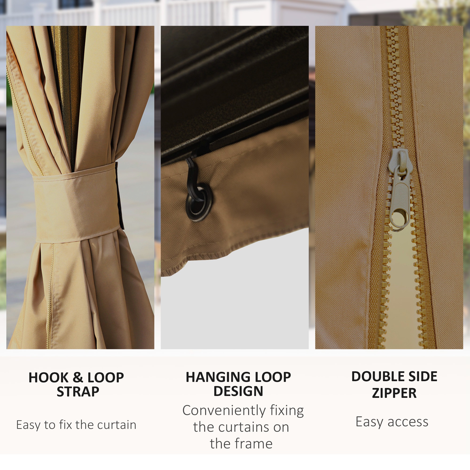 - Curtains all around for privacy with mosquito netting