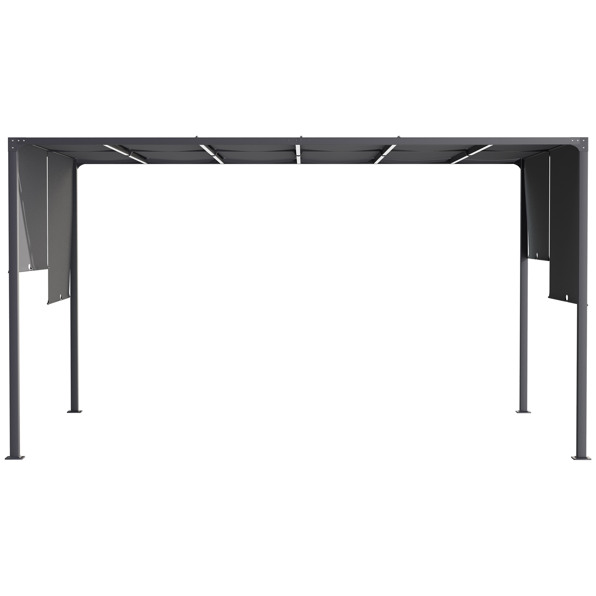 Extend the shaded area of your garden virtually anywhere, day or night. This Outsunny 3 x 4m pergola canopy offers an open space with a sliding roof that provides shade in different positions. Ten solar-powered LED light strips create a soft glow when it gets dark. Metal frame for a strong structure, with included accessories to pin it to the ground for extra stability.