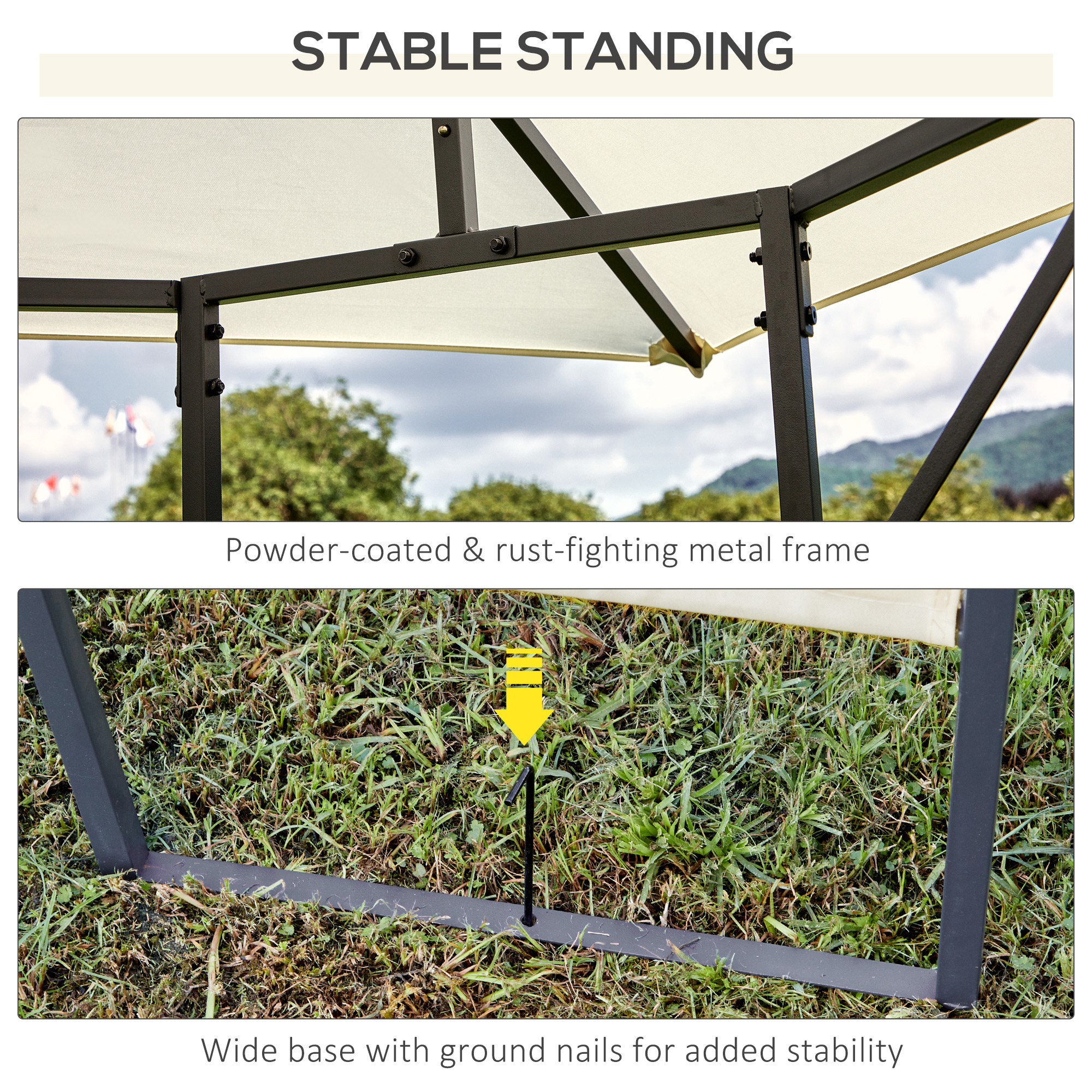 This Outsunny 3m x 3m gazebo with sides is a great way to create a shaded place when you require it. Made of a strong steel frame and covered by a water-resistant PE canopy top, the garden pavilion is sturdy for daily use. It is a great decorative centrepiece of any garden.