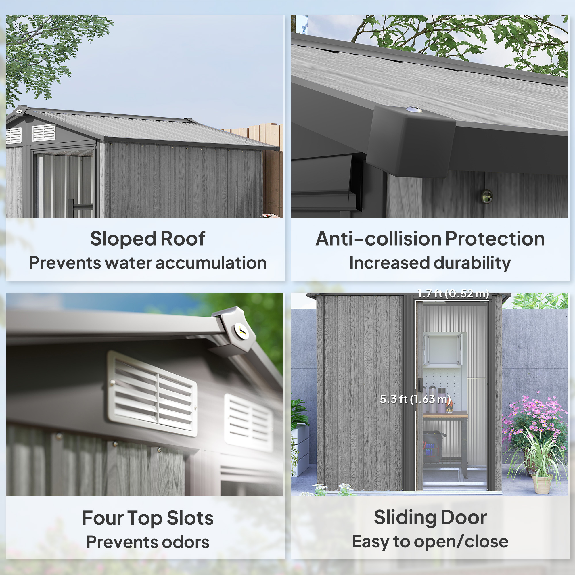Essential outdoor shed with a sheltered roof to keep safe. This Outsunny galvanised shed is a must for every home. Made from steel, the shell is strong and tough - built with a sliding door to open and access inside easily. The built-in ventilation slots allow air inside, keeping contents aerated and fresh. A sloping roof helps prevent rainwater and other liquids build up, so nothing leaks through inside. Foundation kit included for shed to stand level on the ground.