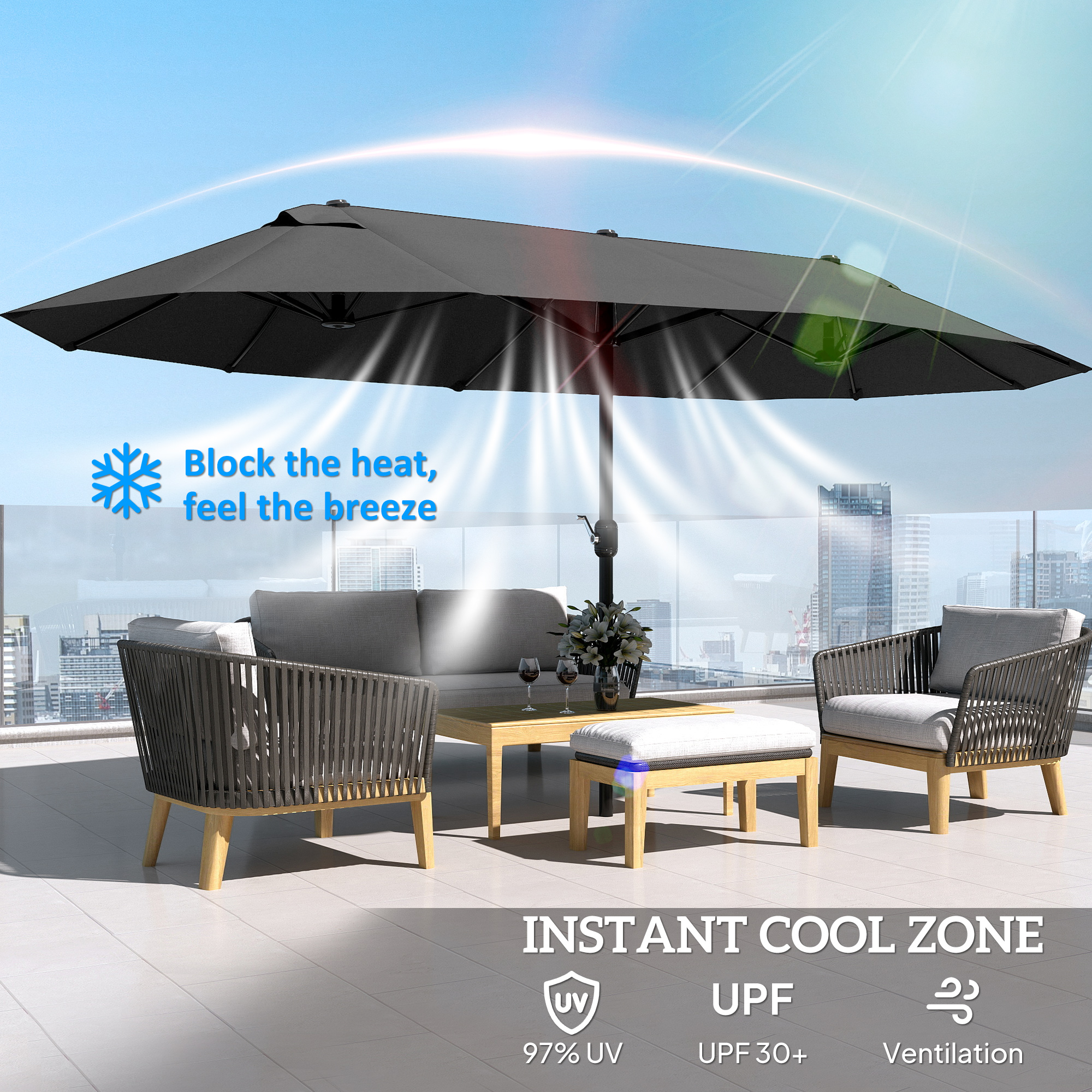 - Double canopy design garden umbrella covers a 4.6M diameter area. Plenty of shade