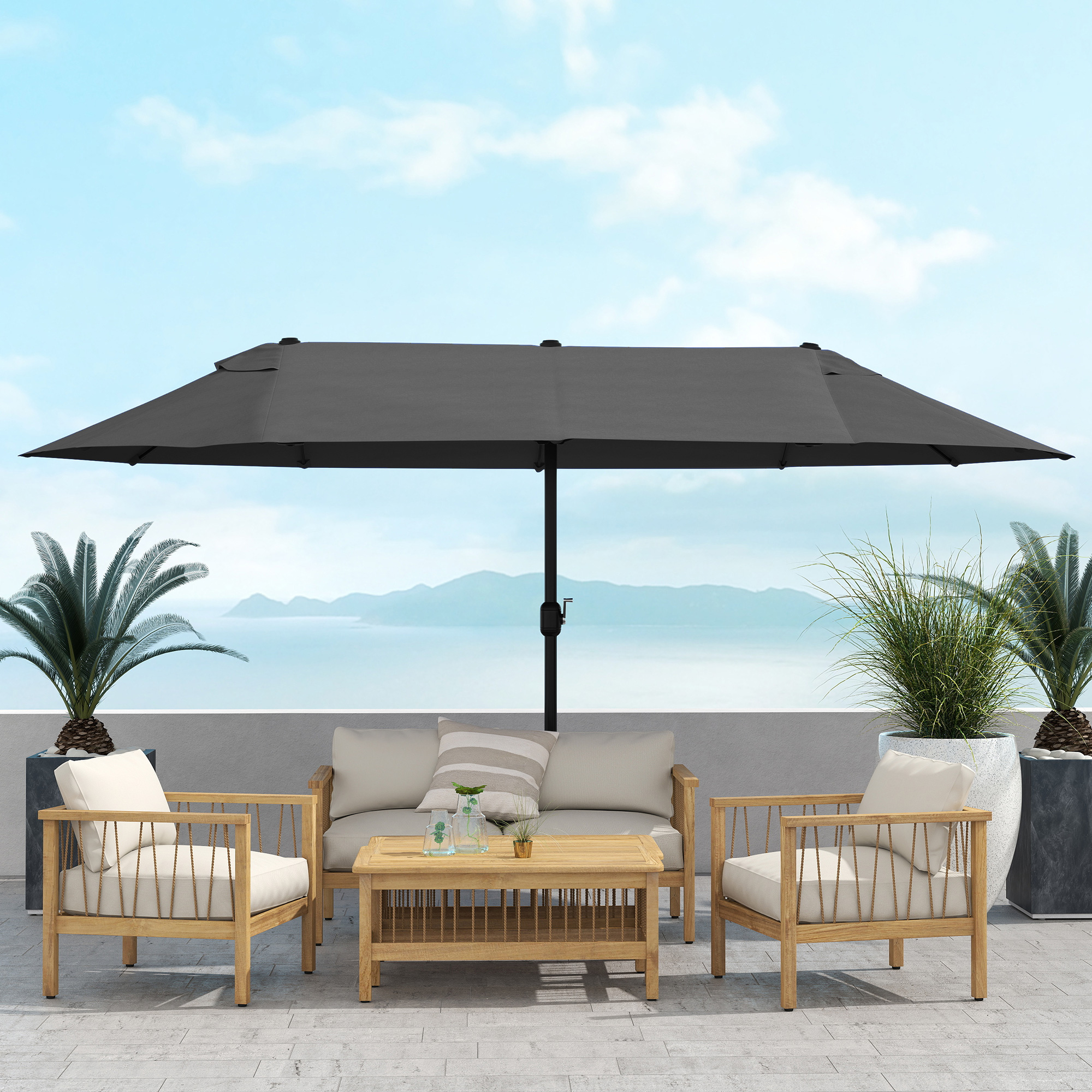 Practical and stylish, there's no better way to enjoy the sun than with this Outsunny double parasol. In a bright colour, this garden shelter covers a 4.6M diameter - ensure you and friends are completely covered all day long. The frame is made from metal for a strong core, with 12 ribs on the canopy for added support. Finished with a crank handle to open and close easily.