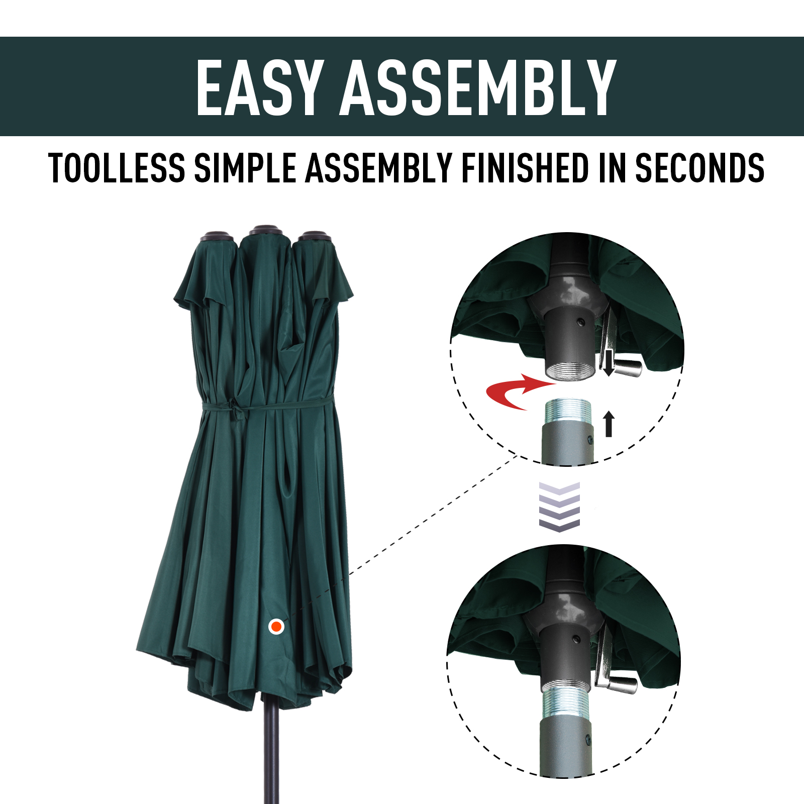 - Double canopy design garden umbrella covering a 4.6M diameter area