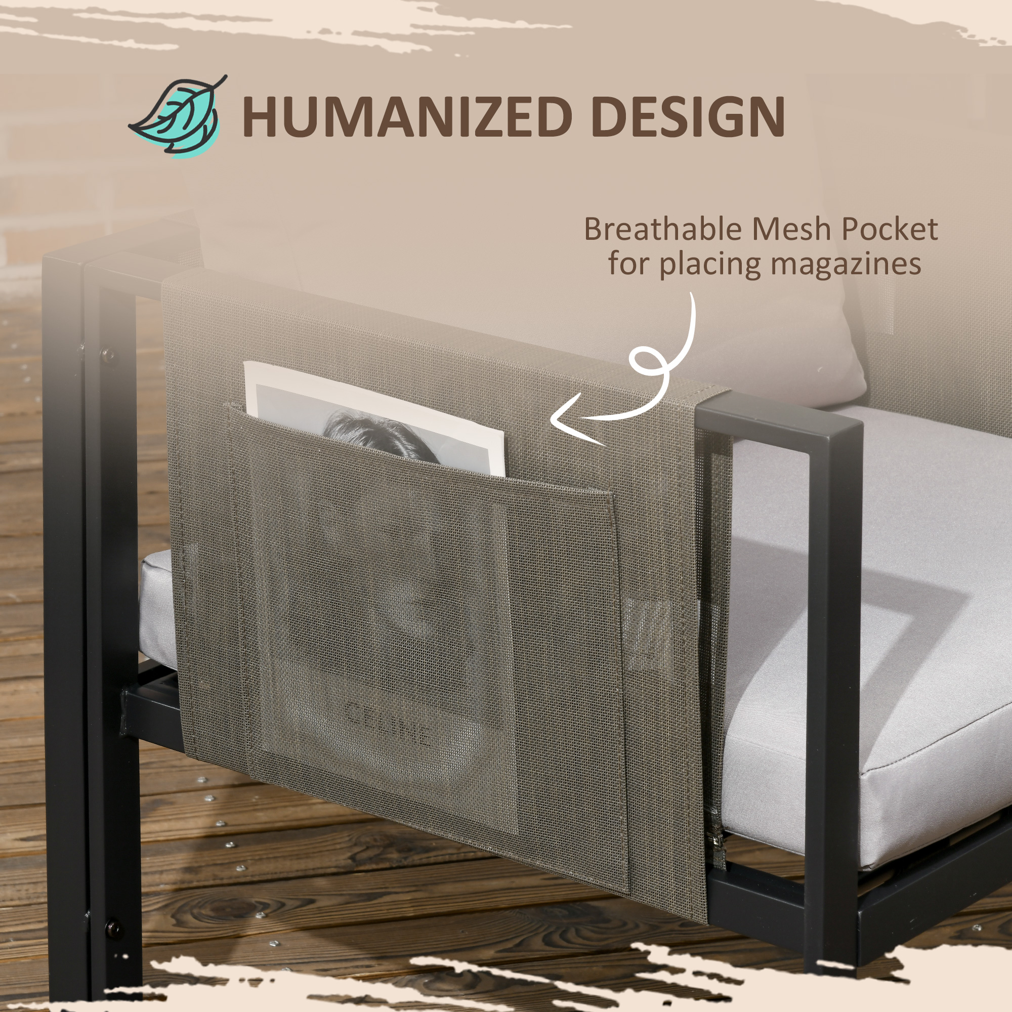 Let friends and family gather in a simple yet sleek style outdoors, thanks to this Outsunny set. Four pieces – two armchairs, a two-seater sofa and a coffee table - seats up to four people. Each frame is made from steel: strong and supportive. Thick padded cushions on the seats and backs for comfort. Comes complete with a tempered glass-top table.