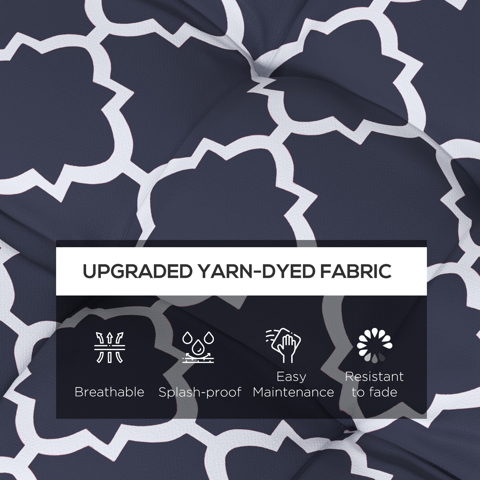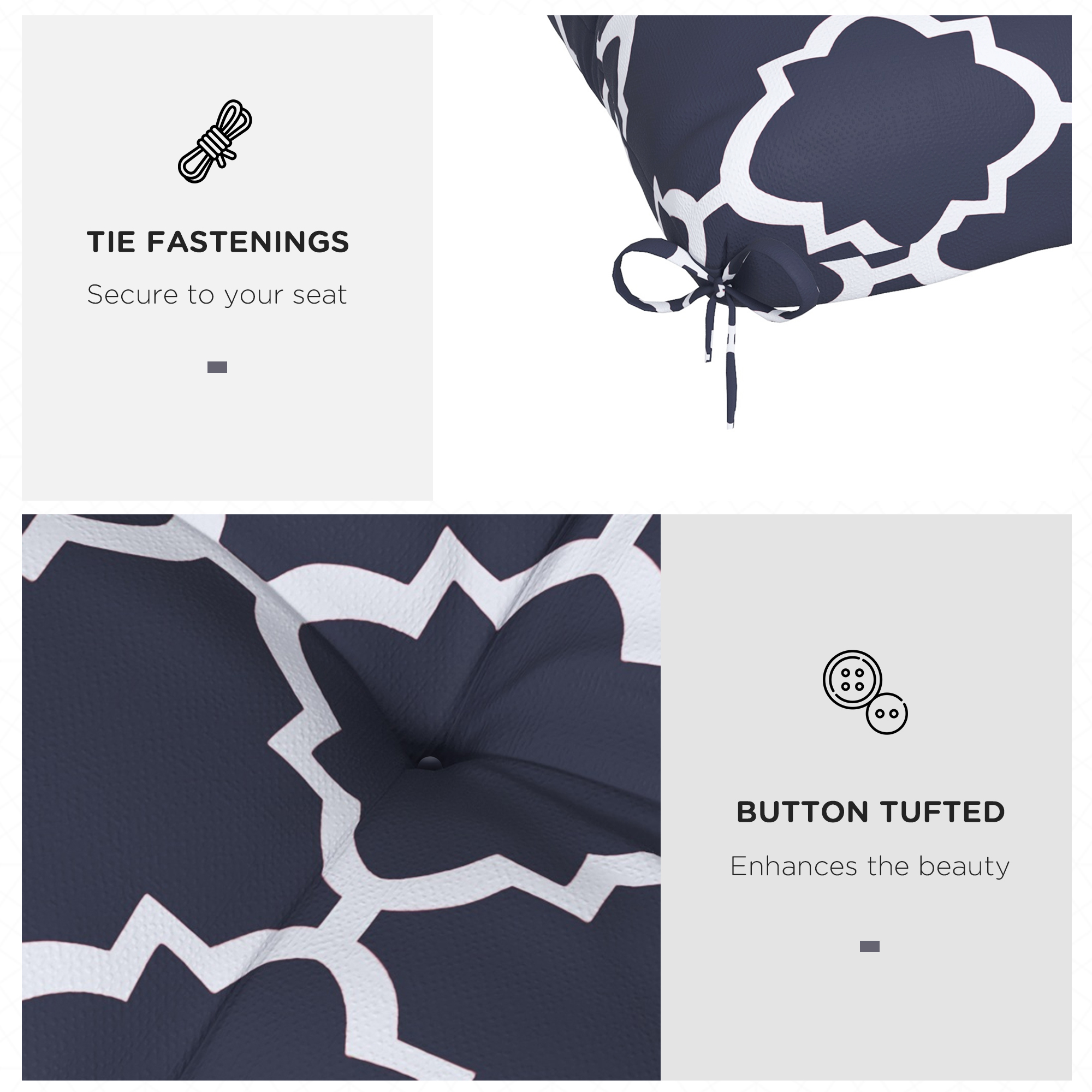 Colour meets comfort with this Outsunny cushion set. Filled with thick foam, you'll enjoy sitting outdoors for extended hours. Fabric covers are soft, the tufting adds style. Flame retardant for safety, each cover is resistant to light stains for cleanliness. Complete with tie fastenings to secure to each seat.