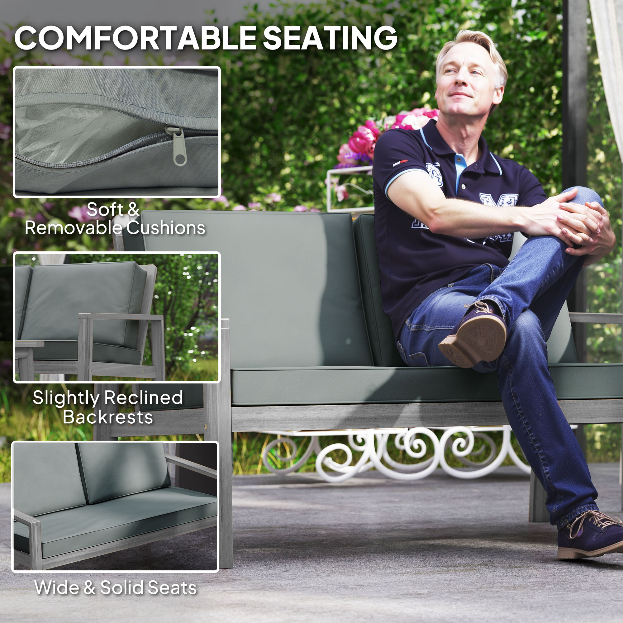 Transform your garden into a haven of relaxation with the Outsunny garden table and chairs set. This four-piece set, featuring a loveseat, two armchairs and a garden table, promises comfort with its soft cushions, slightly reclined backrests and wide seats. Crafted from 100% acacia wood with a varnish finish, it's a stylish choice for any conservatory or balcony furniture set.
