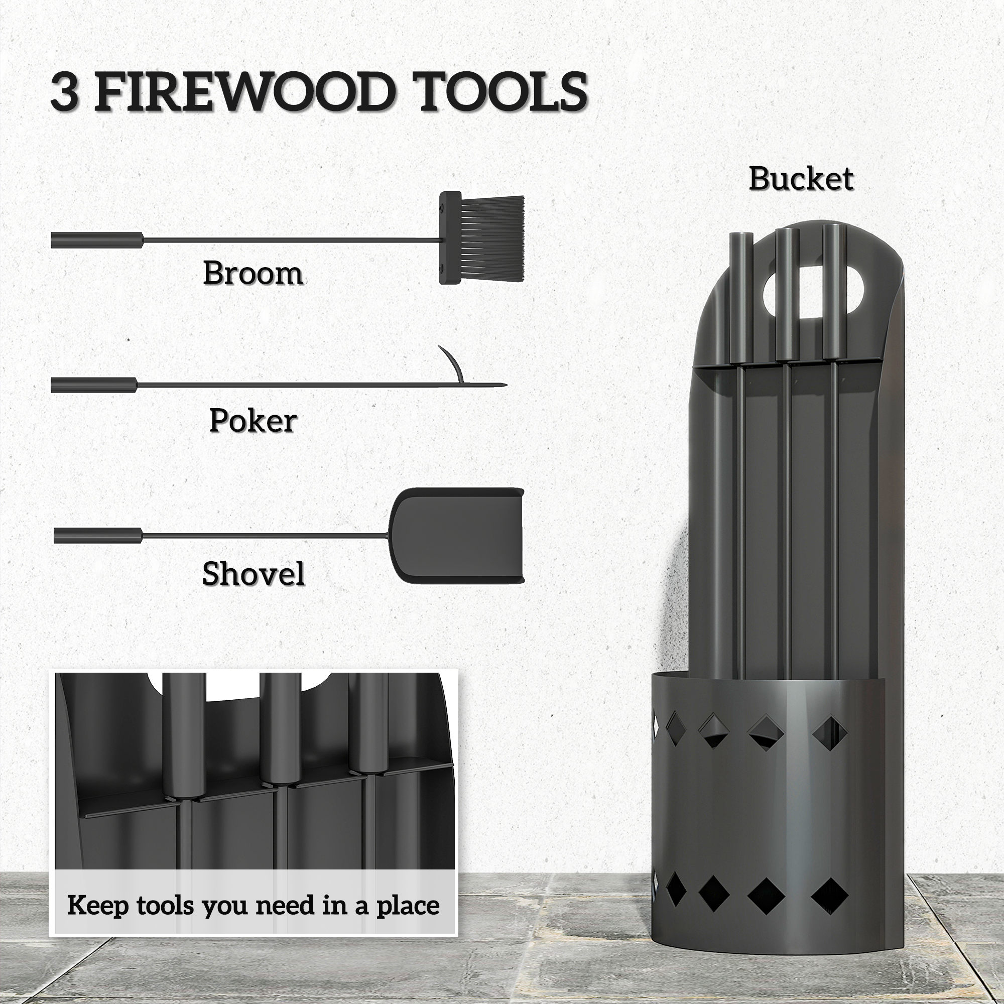 Warm up your hearth with the Outsunny fireplace companion set, a charming addition to any indoor or outdoor setting. This four-piece set includes a broom, a shovel, a poker and a bucket, all crafted in metal with a sleek black powder coating. Enjoy effortless maintenance and a timeless look with these essential fireplace accessories.