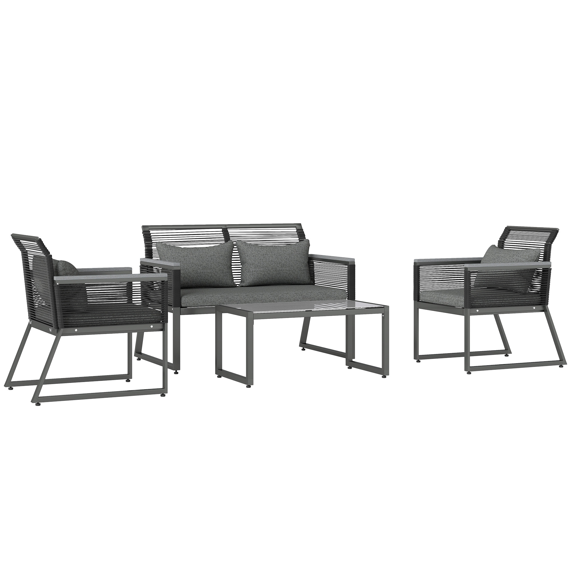 This four-piece PE rattan outdoor garden furniture set from Outsunny is made of quality PE rattan, with metal frame underneath. The conservatory furniture has a modern look and feel, creating a raw aesthetic that fits in, great for indoor, outdoor patio, porch and poolside. Coffee table with wood grain ceramic tempered glass tabletop which is easy to clean and maintain. Start enjoying conversation and meals outdoors life with the Outsunny outdoor furniture.