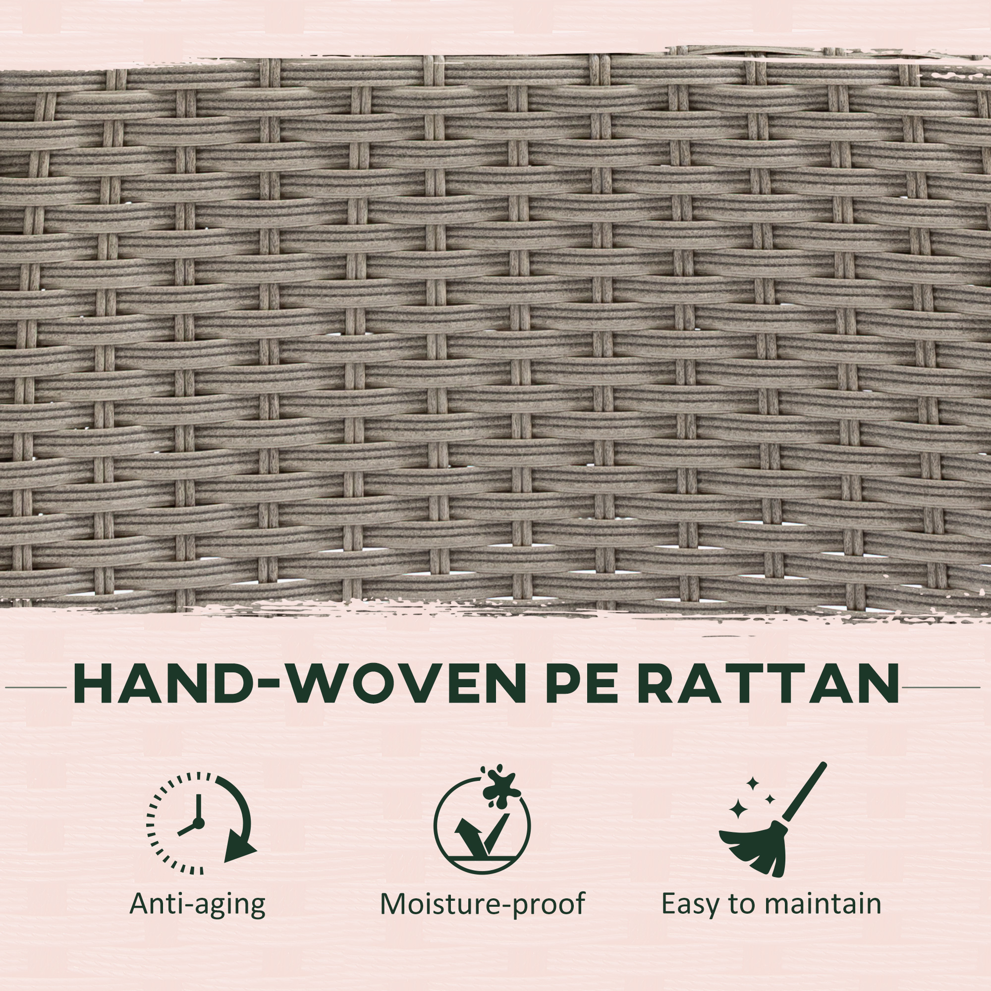 - Steel frame for a strong core, wrapped in robust plastic wicker