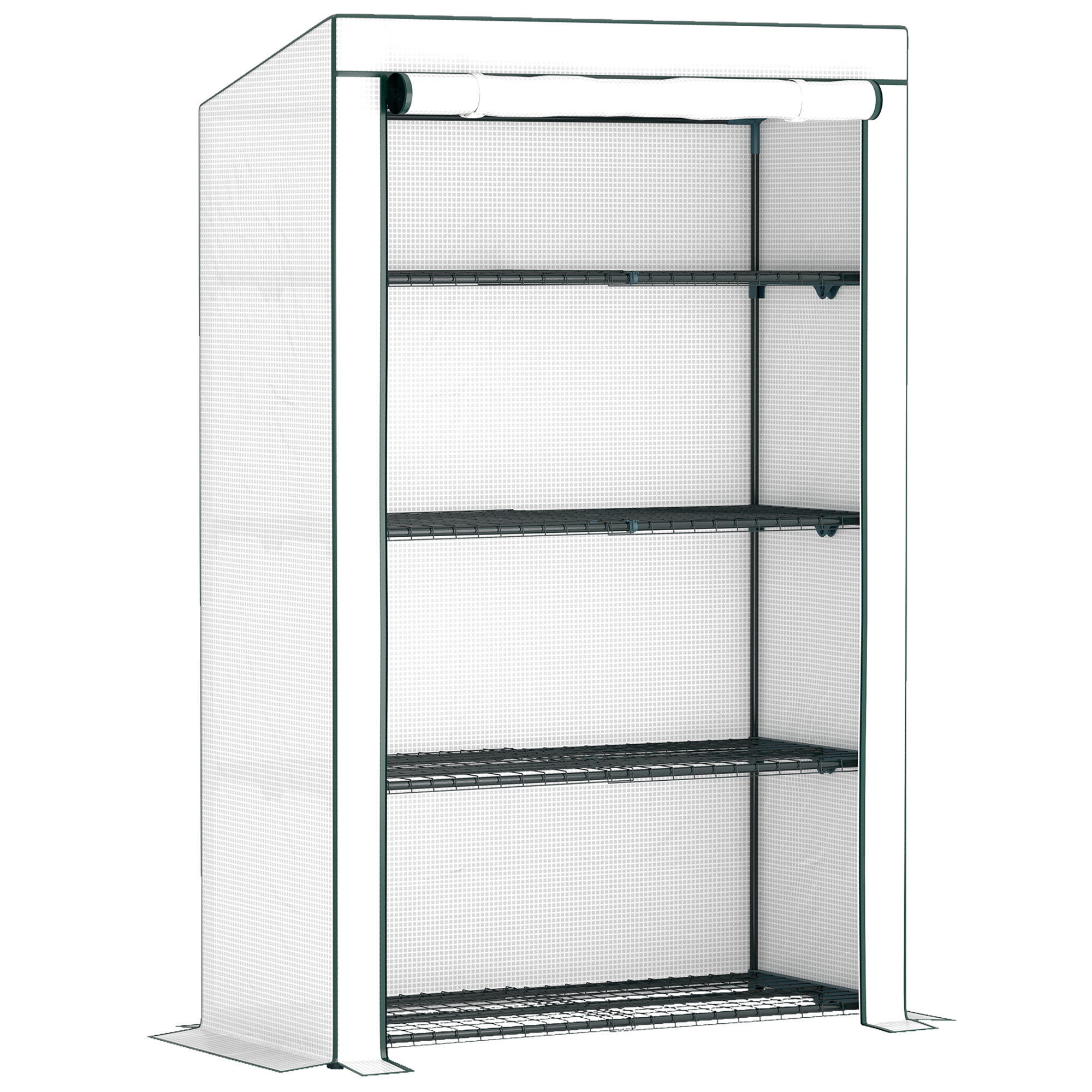 Grow greenery practically anywhere with this Outsunny greenhouse. The four inner shelves offer plenty of space for plants, flower pots and seed trays; the 140g/m² plastic cover shields inside from outer weather. Complete with a zipped door, which rolls up and holds in place to allow in fresh air to promote healthy growth.