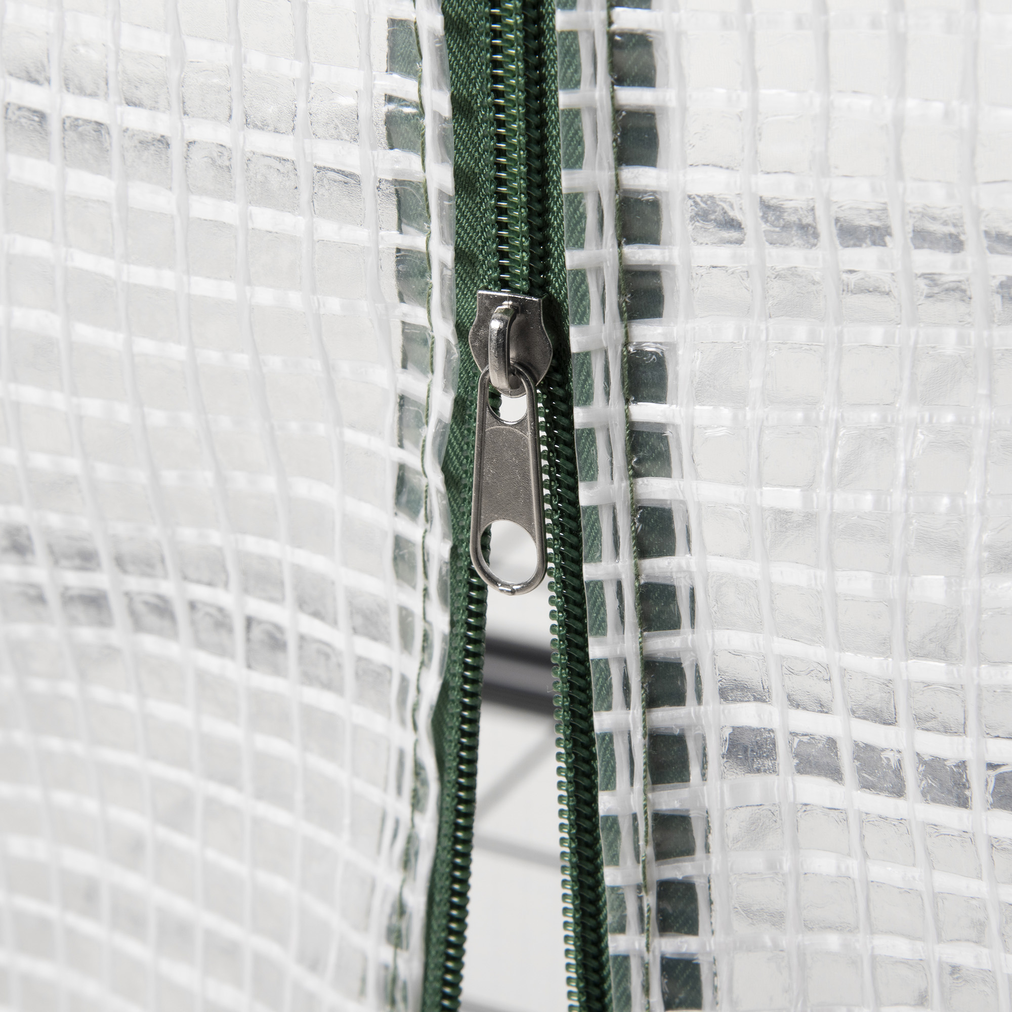 This Outsunny walk-in garden greenhouse is perfect for the home gardening to protect and grow your plants in cold weather outside. The steel frame and PE cover will keep your plants and vegetables more secure than on their own. The roll-up design of the hot house ensures excellent ventilation for your plants, and the zipped door provides easy access for you to take care of them. Start your backyard gardening today with this compact warm house from Outsunny throughout the year.