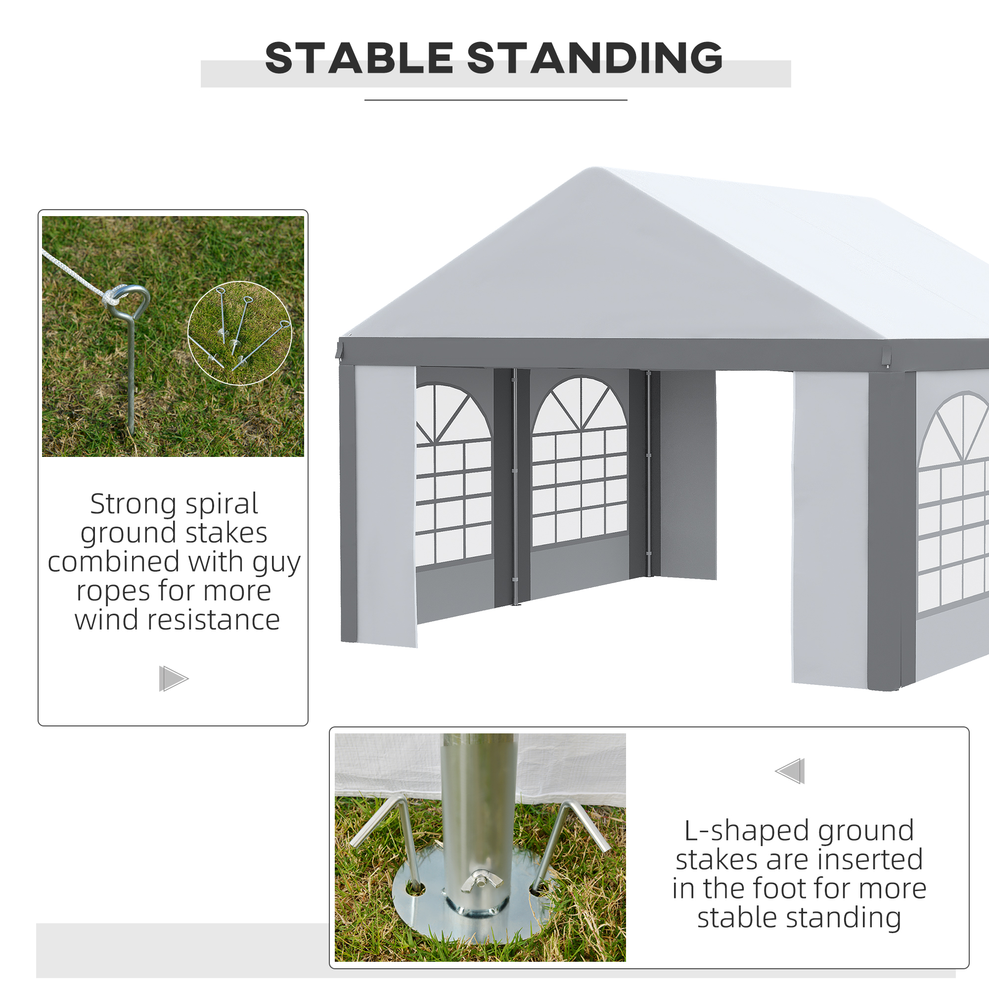 For your outdoor gatherings this season, say hello this cool stripey 4 x 4m marquee gazebo, from Outsunny. A galvanised steel frame means a strong, sturdy core; it's fitted with a thick plastic canopy for a safe inner shelter. The roof shields you inside from direct sunlight and light wind - ideal for keeping you and guests sheltered when needed. All the walls can be taken off when you want to open up on hotter days - with windows to allow sunlight in when they're fixed in place.