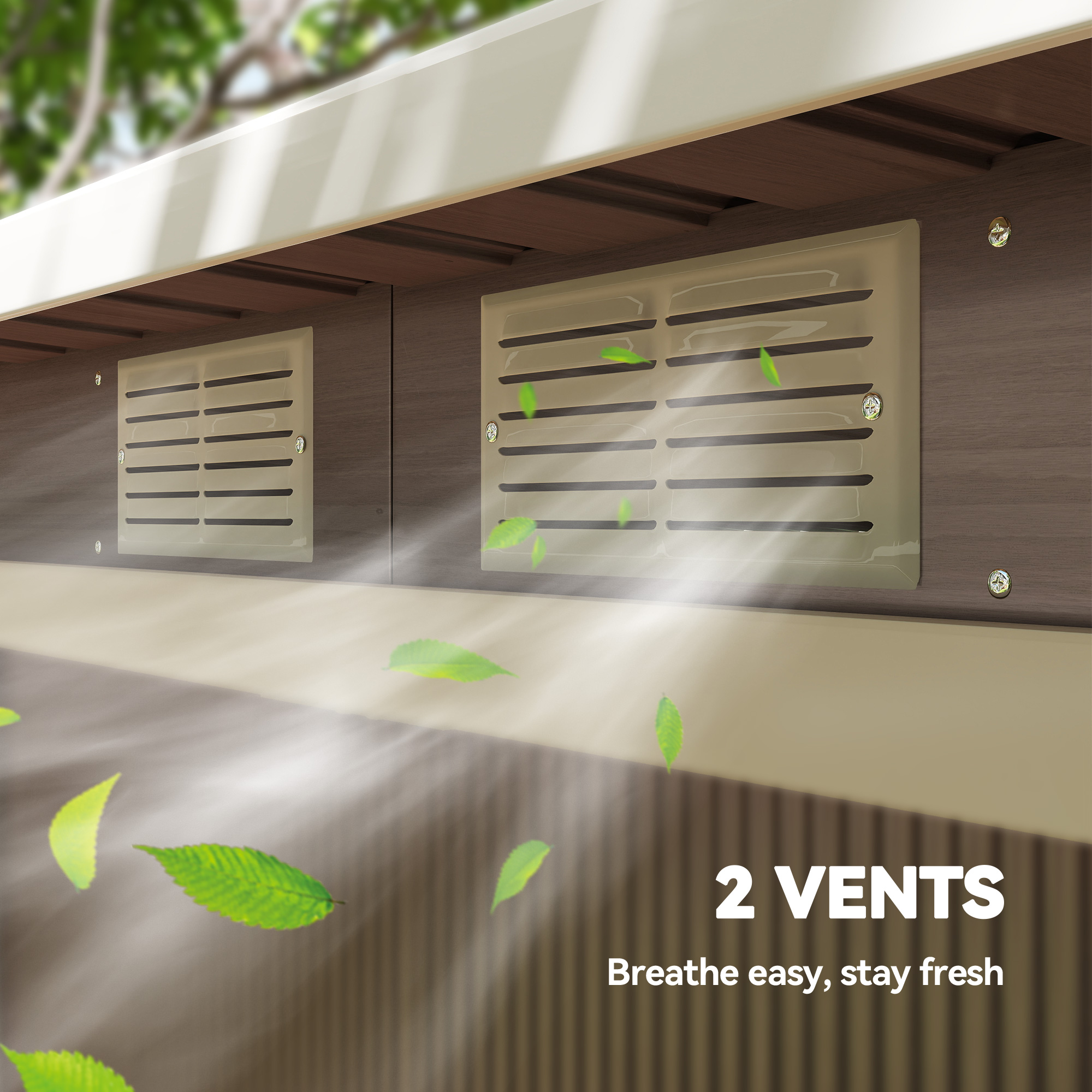 This Outsunny garden tool shed is a great for keeping tools and equipment stored together. Made from galvanised steel, the structure is tough, so it's suitable for outdoor use. A sliding double door for easy access in and out. Two ventilation windows allow air to flow inside to prevent mold and humidity. A foundation kit is also included, so you have everything you need for installing this outdoor shed.
