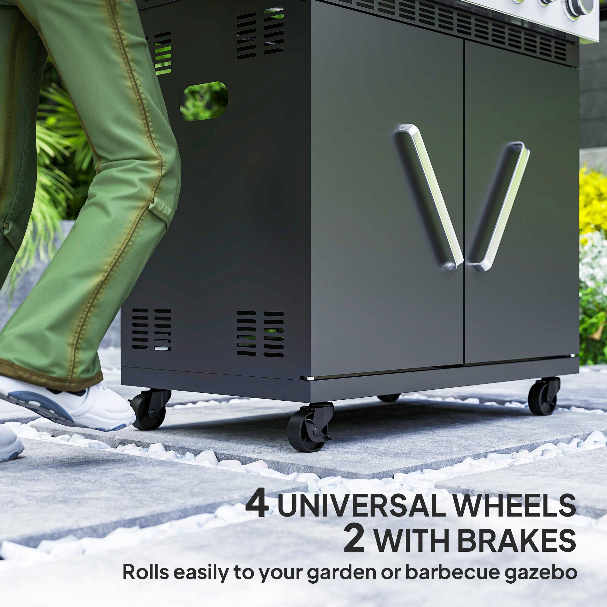 Ignite your garden BBQ with the Outsunny gas grill! Featuring a spacious 2788 cm² grilling area and a warming rack, you'll have plenty of space to cook up a feast. The convenient side burner keeps sauces and sides simmering while your main course sizzles to perfection. With individually ignitable and controllable burners and a built-in dual-scale thermometer, achieving optimal grilling temperatures has never been easier!