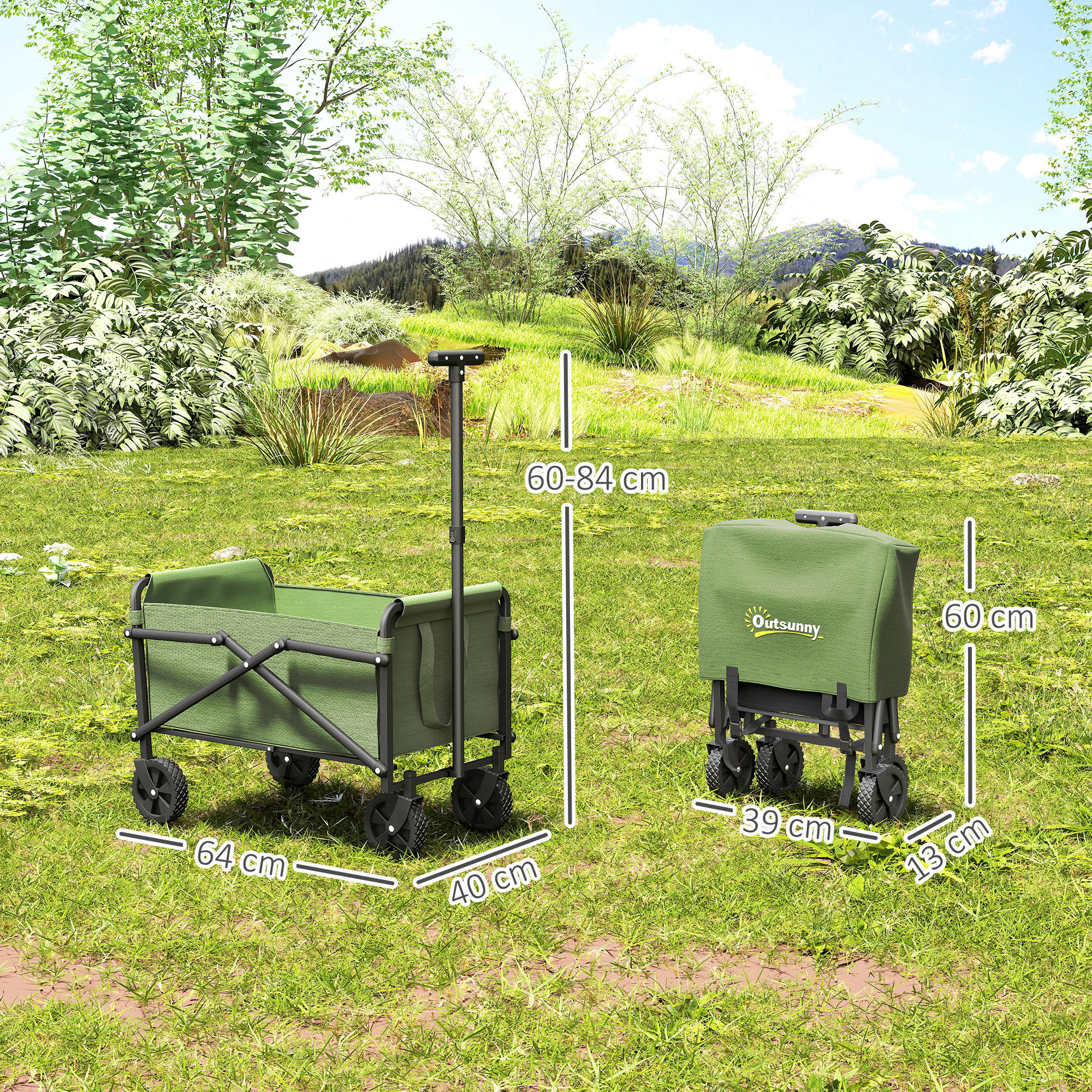 Discover the convenience of the Outsunny Garden Cart, a versatile trolley on wheels designed for every outdoor adventure. With a spacious 41 L cargo bag and robust 60 kg capacity, it's great as a festival trolley or camping trolley. Crafted from splash-resistant Oxford fabric and a powder-coated frame, this foldable cart is built for durability and ease.