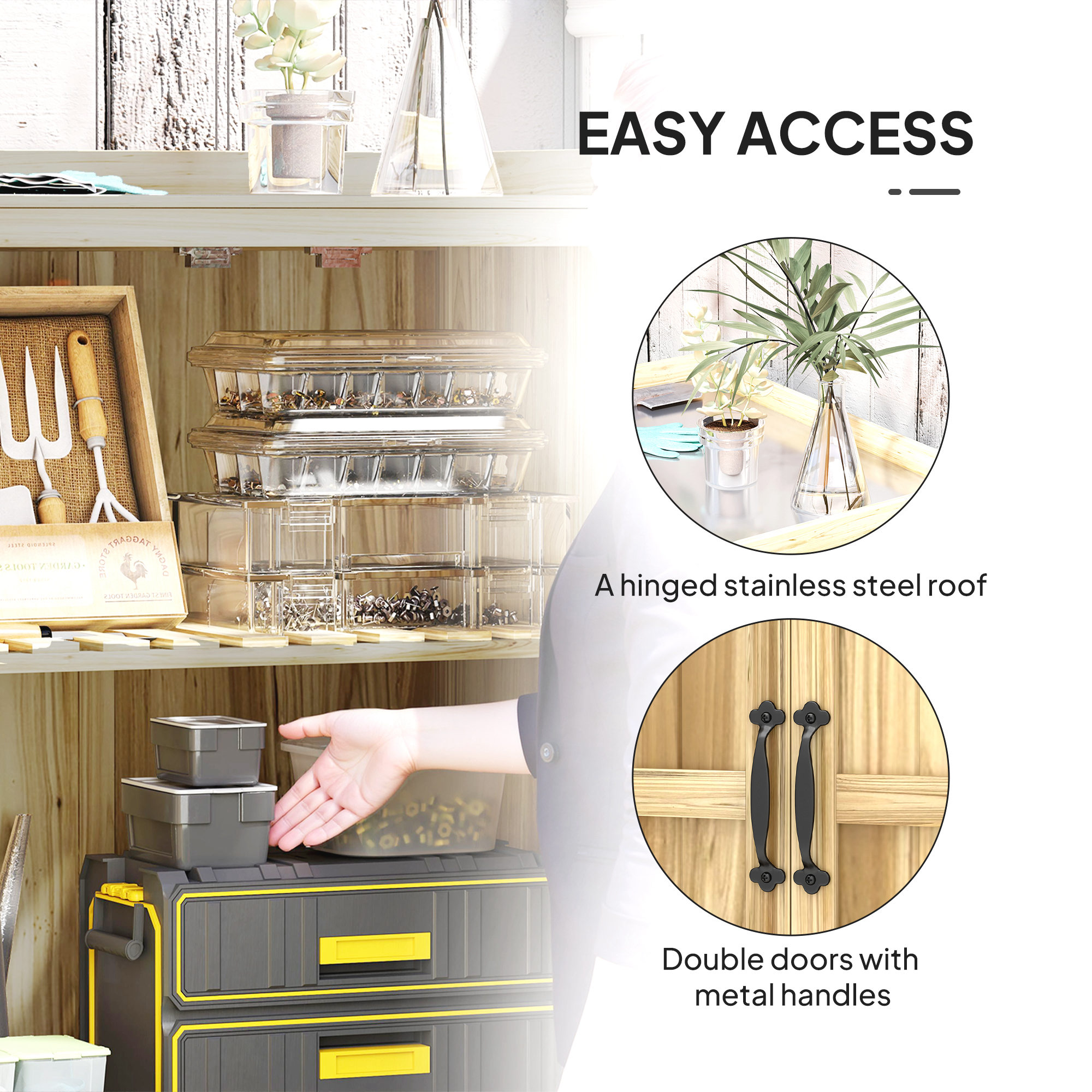 Doubling as a shed workbench, this Outsunny piece is great for garages, greenhouses and other outdoor spots. It features an easy-open hinged roof and two doors for quick access. Made from fir wood, this is a naturally tough and beautiful piece - with a varnish coating for smooth protection: it's suitable for outdoor use. With two inner shelves, there's enough storage and organisation room for outdoor tools and equipment.