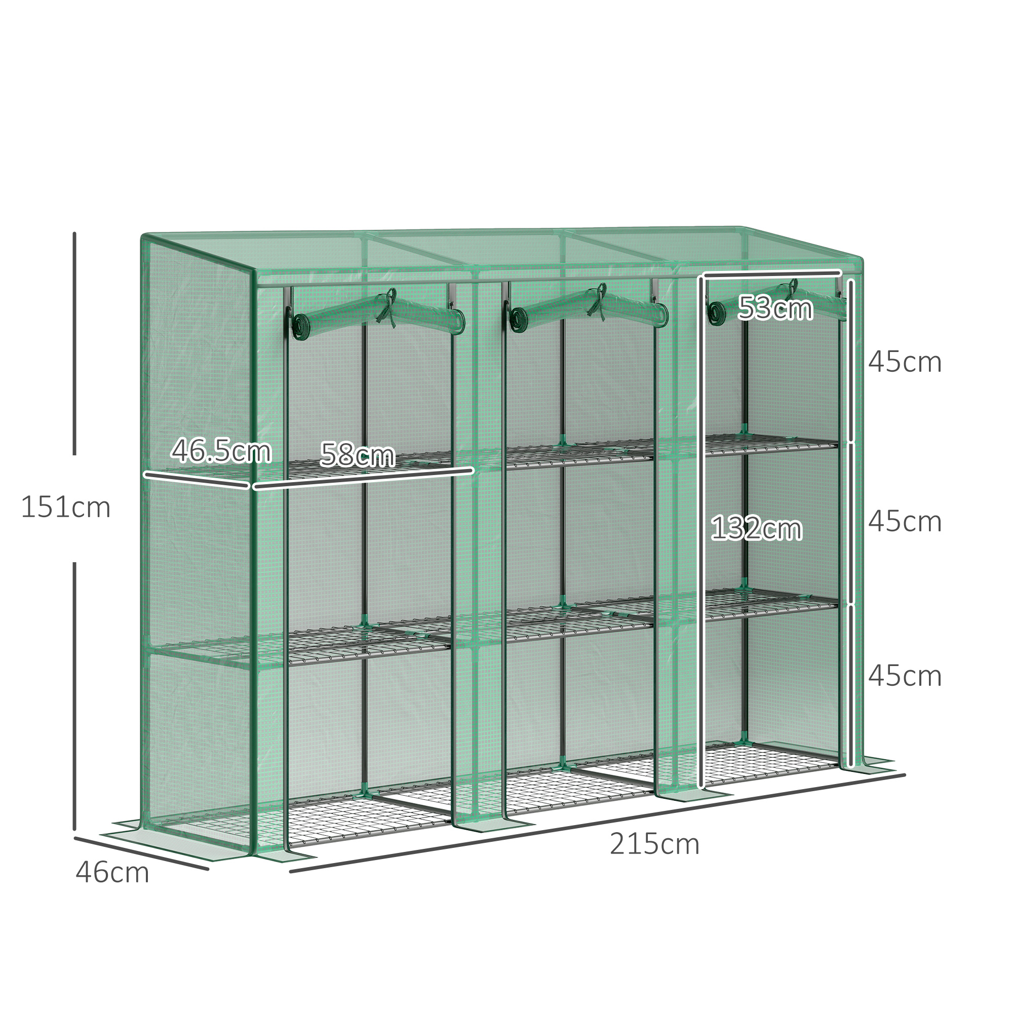 This Outsunny three-tier plastic greenhouse provides plenty of space for plants, flowers and more. The PE cover protects plants inside from wind and rain, whilst allowing plenty of sunlight to pass through. Plus, the roll-up zipped doors allows easy access and provides fresh air inside whenever.