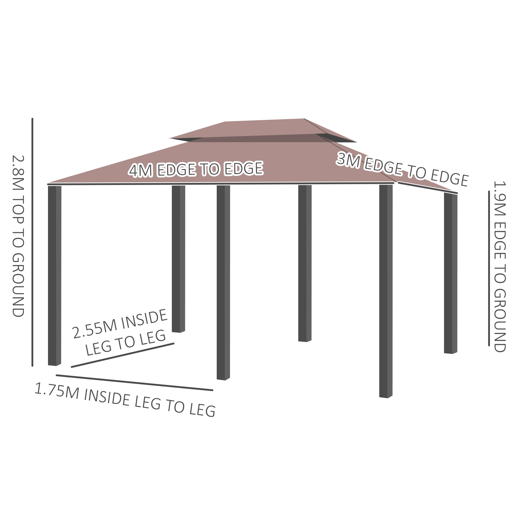 - Overall Dimensions: 3L x 4W x 2.8Hm