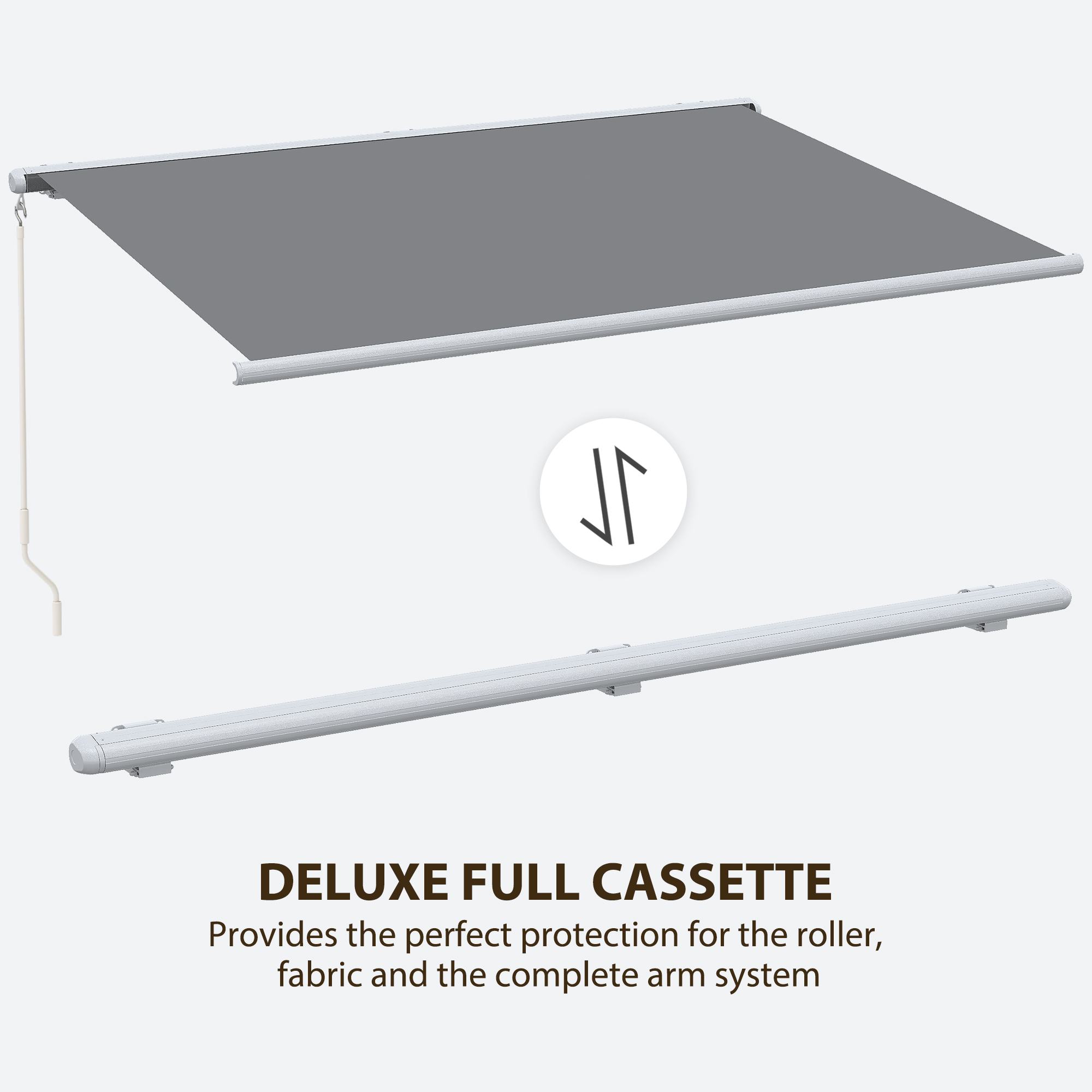 Provide cover for yourself outdoors instantly with electric retractable awnings for patios from Outsunny. The frame is made from a blend of aluminium and metal, ensuring it is solid and reliable for use outdoors in all weather. Using 280g/m², the window awning features a PU coating, helping to protect you from UV and sun glare without fading the colour. Compact cassette protects the fabric, ensuring longer life and less exposure to weather and corrosive agents.
