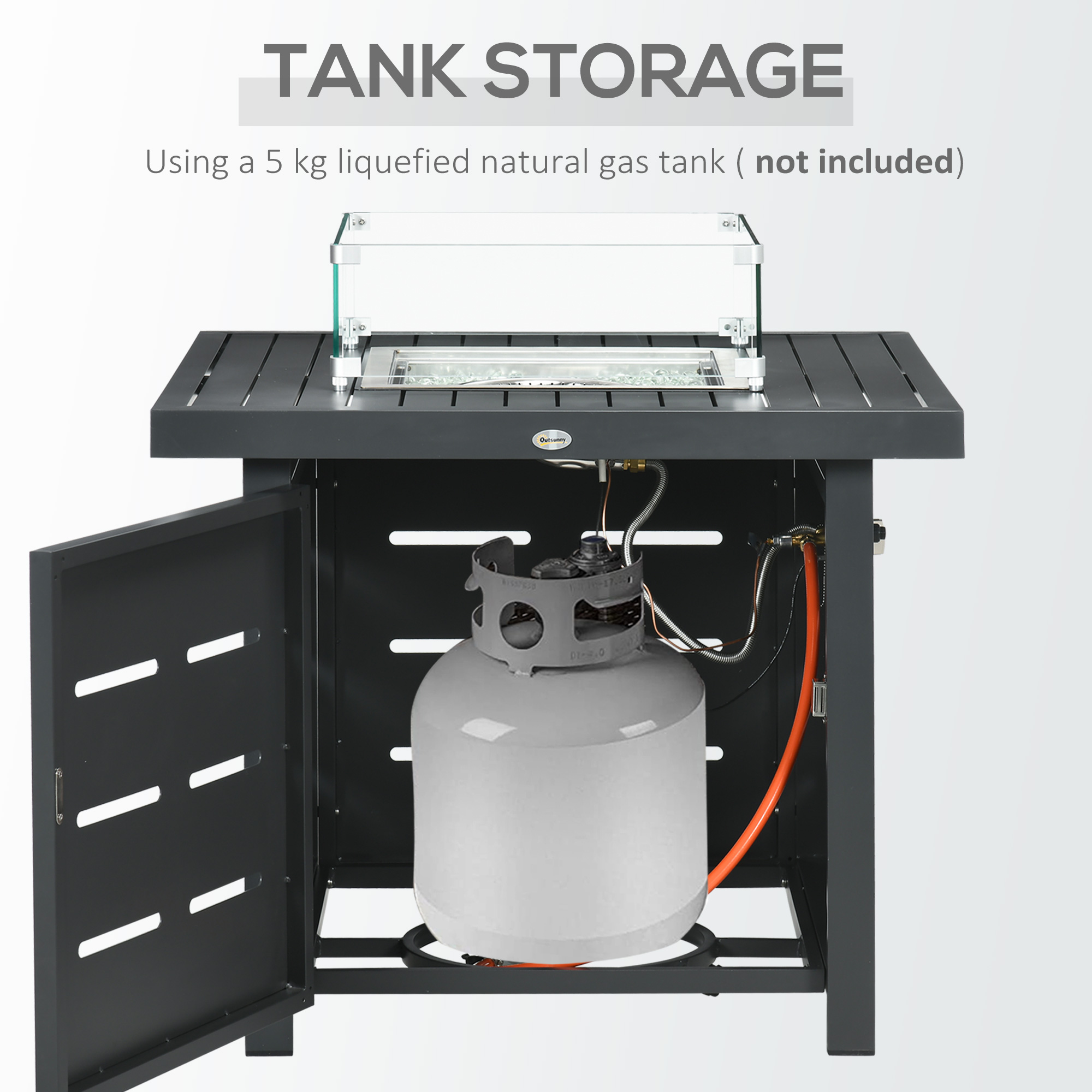 - Fire pit table has up to 50,000 BTU heat output and fast pulse fire ignition. Works with 5kg gas tank (not included)