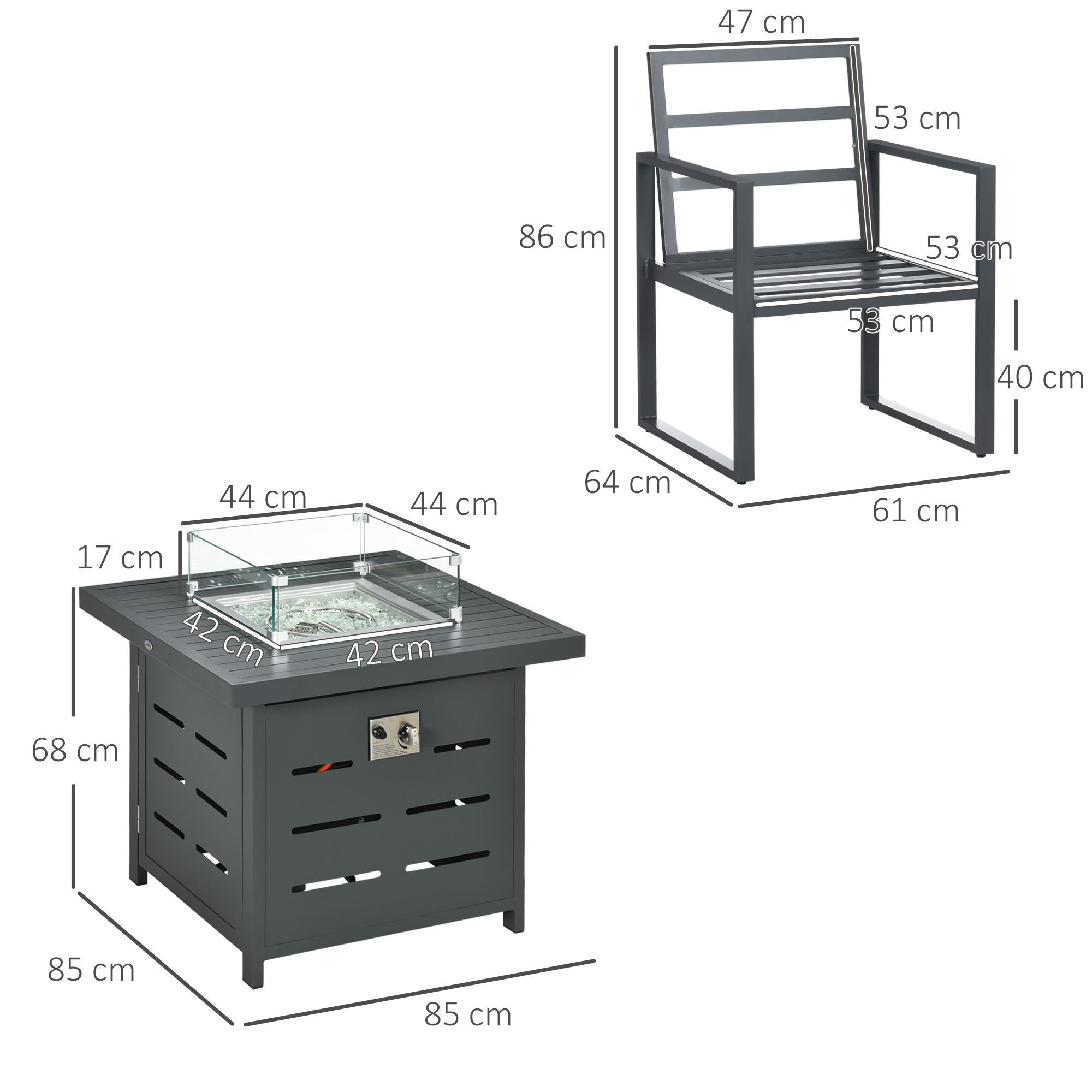 Unwind, evening and night; never be cold or uncomfortable again. This Outsunny set comes with four metal-frame armchairs and a square fire pit dining table. As well as giving you somewhere to eat and drink from, the middle fire pit provides up to 50,000 BTU power - plenty of heat for the colder climes. There's a wind guard and safety cut-off valve for the fire, so you can keep peace of mind, at all times.