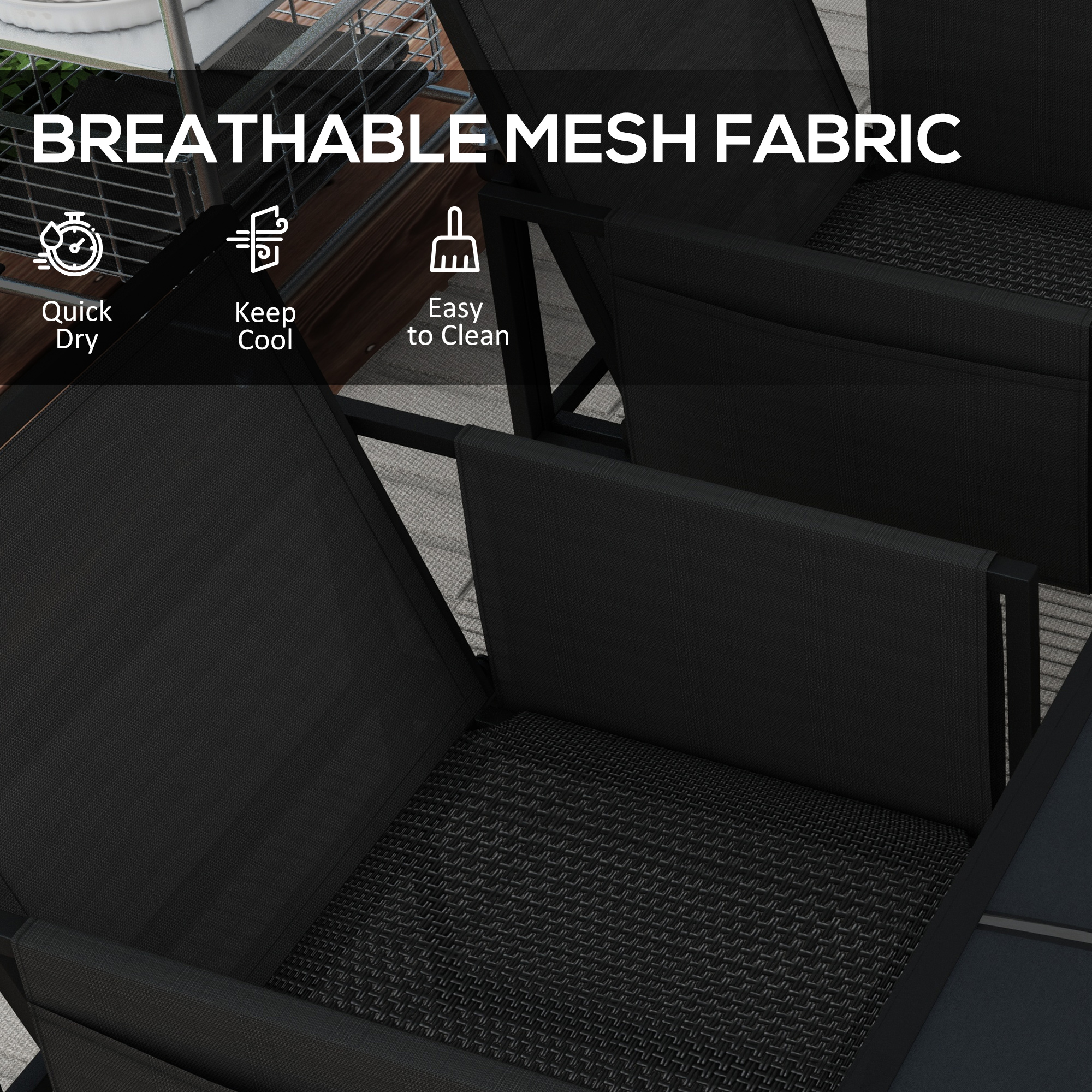 This Outsunny patio table and chairs set is here to relax with friends. Metal frames makes each piece robust. The chairs are fitted with breathable mesh for ventilation. The backs fold down to tuck away under the table - save space when not being used.