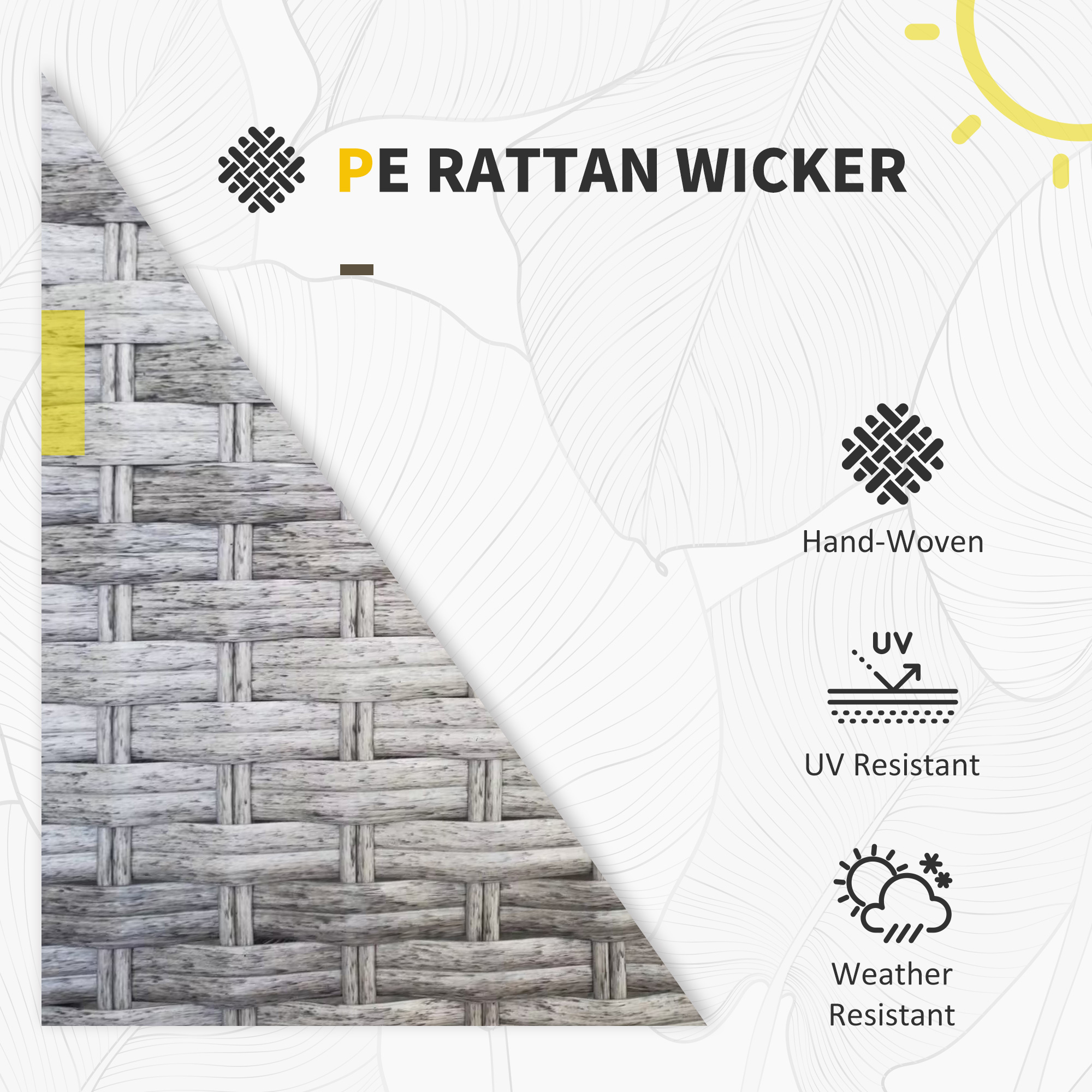 Make your home outdoors as inviting as the inside. This Outsunny garden sofa set is a super comfortable and stylish piece. Each piece offers plenty of room to sit, with padded cushions for comfort. Galvanised, powder coated metal frames mean a strong core, wrapped in stylish and protective plastic wicker. The rattan sofa set comes with armless chair, two corner chairs, a footstool and a glass-top coffee table.