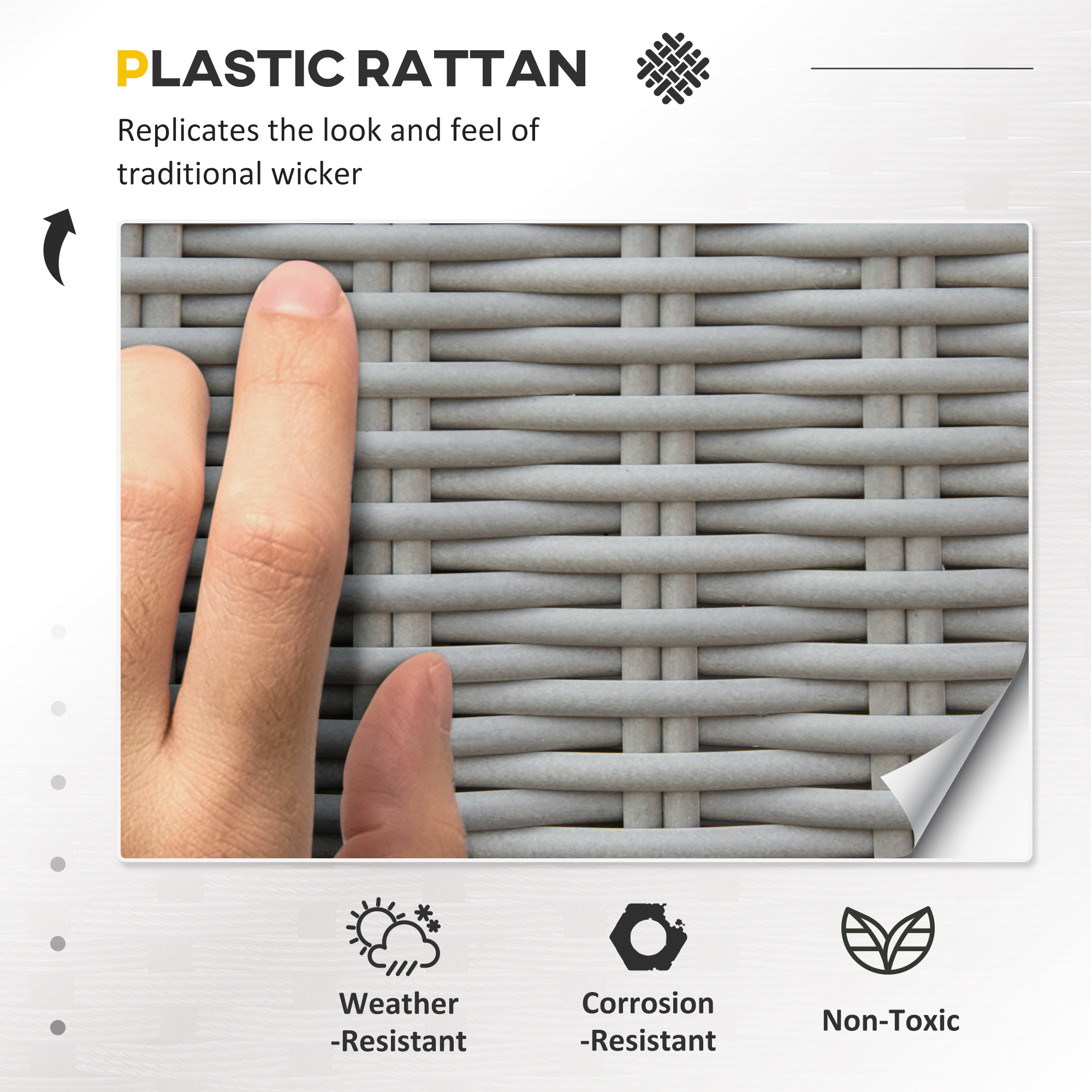 - Color: Grey rattan, Grey cushion