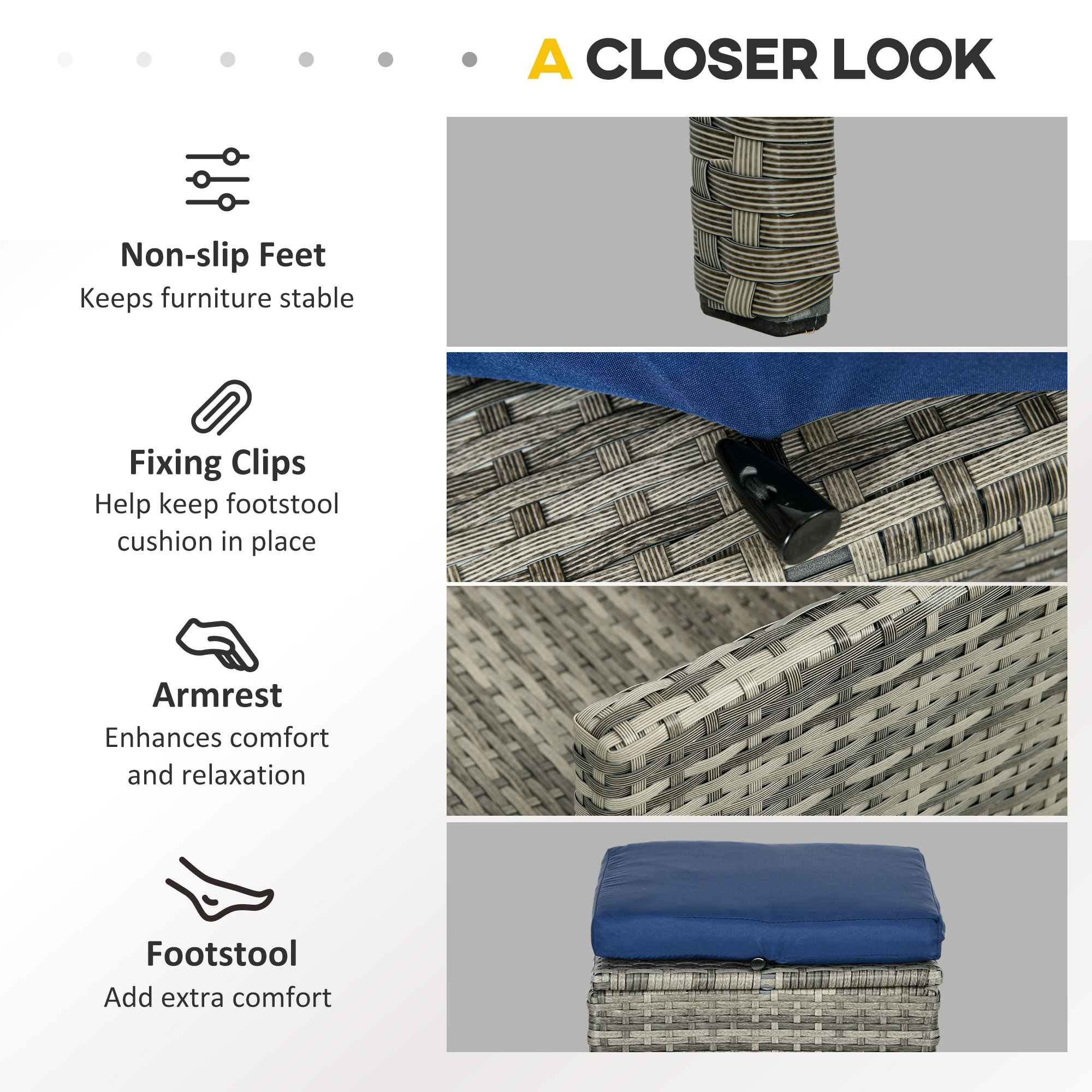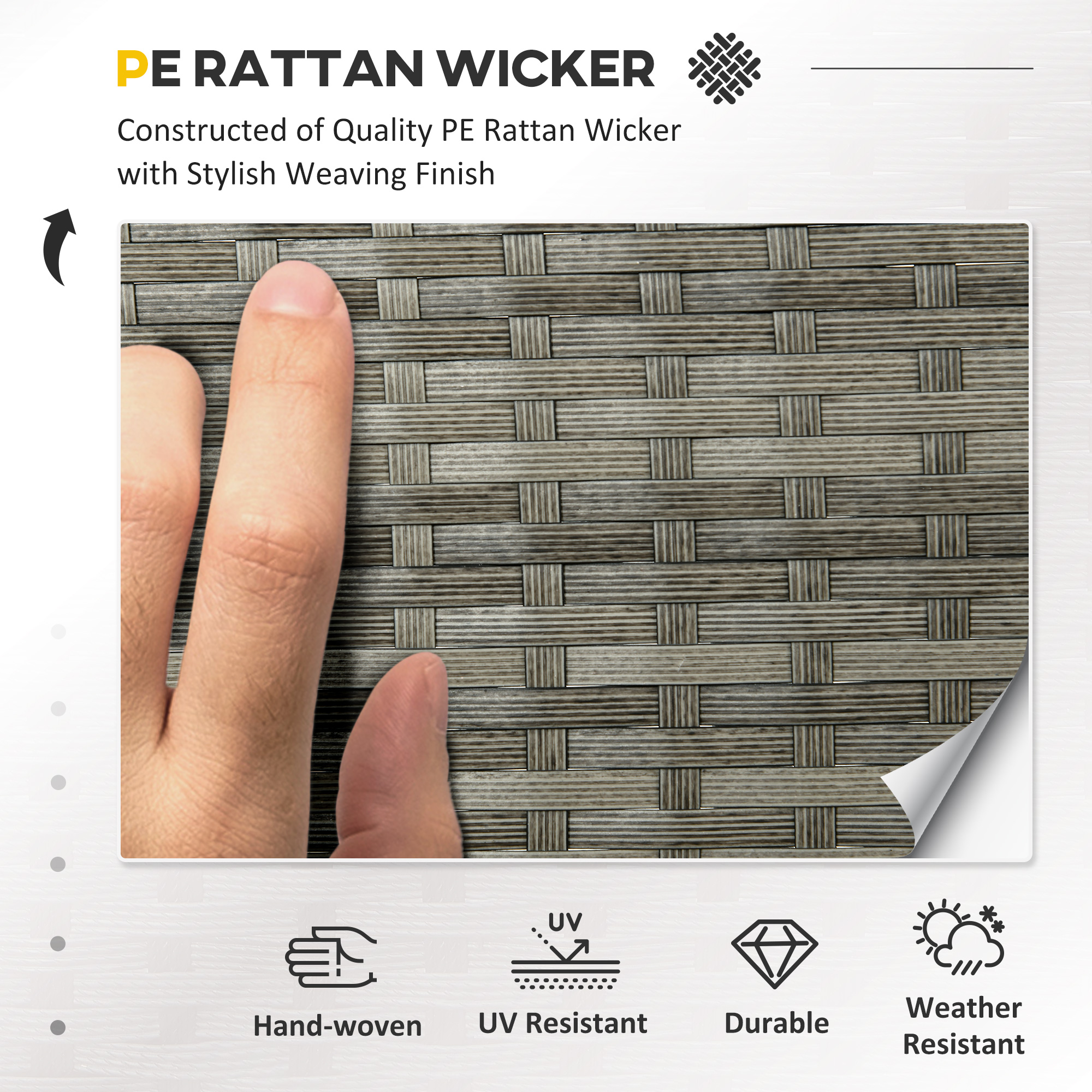 - Galvanised metal frame with double-sided PE rattan for durability