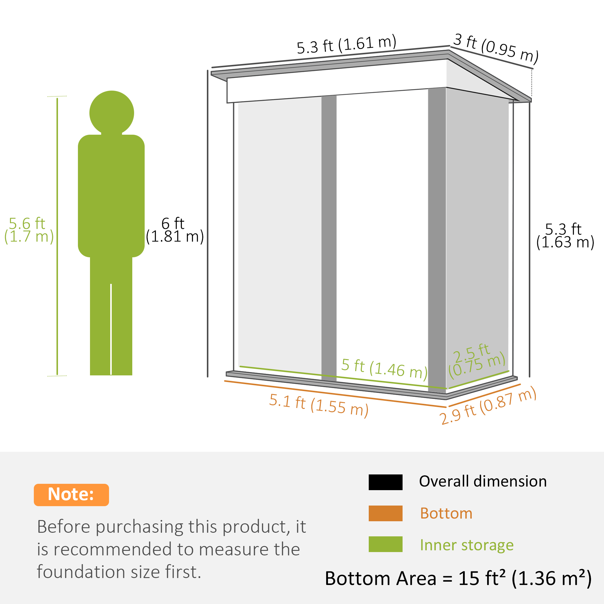 - Floor Area: 1.36 m²