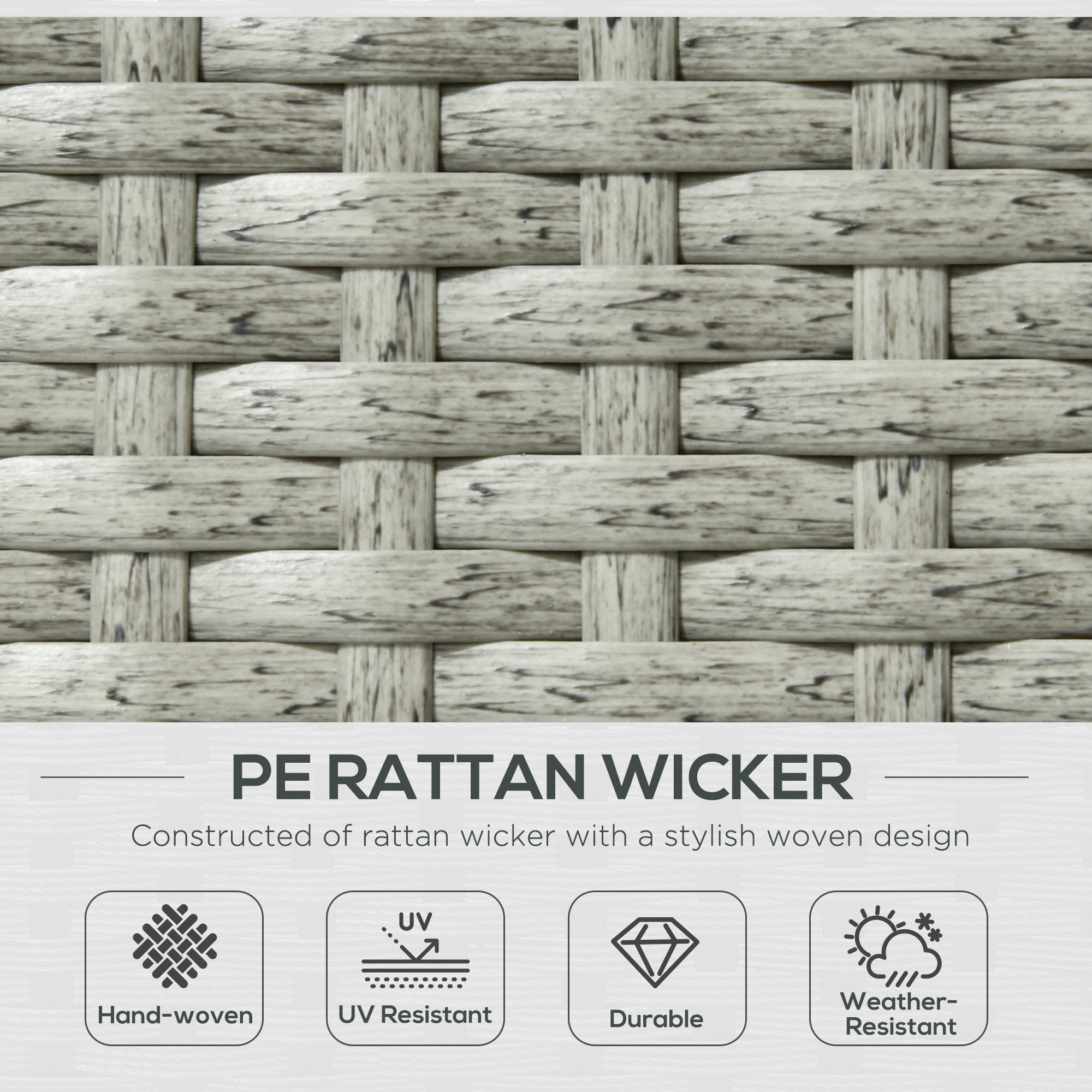 - Strong steel frame, wrapped in plastic wicker for double durability