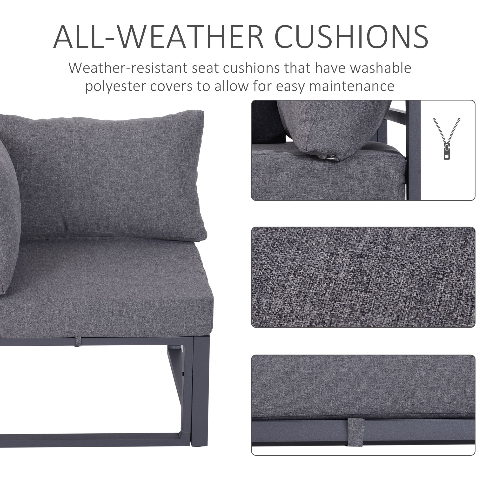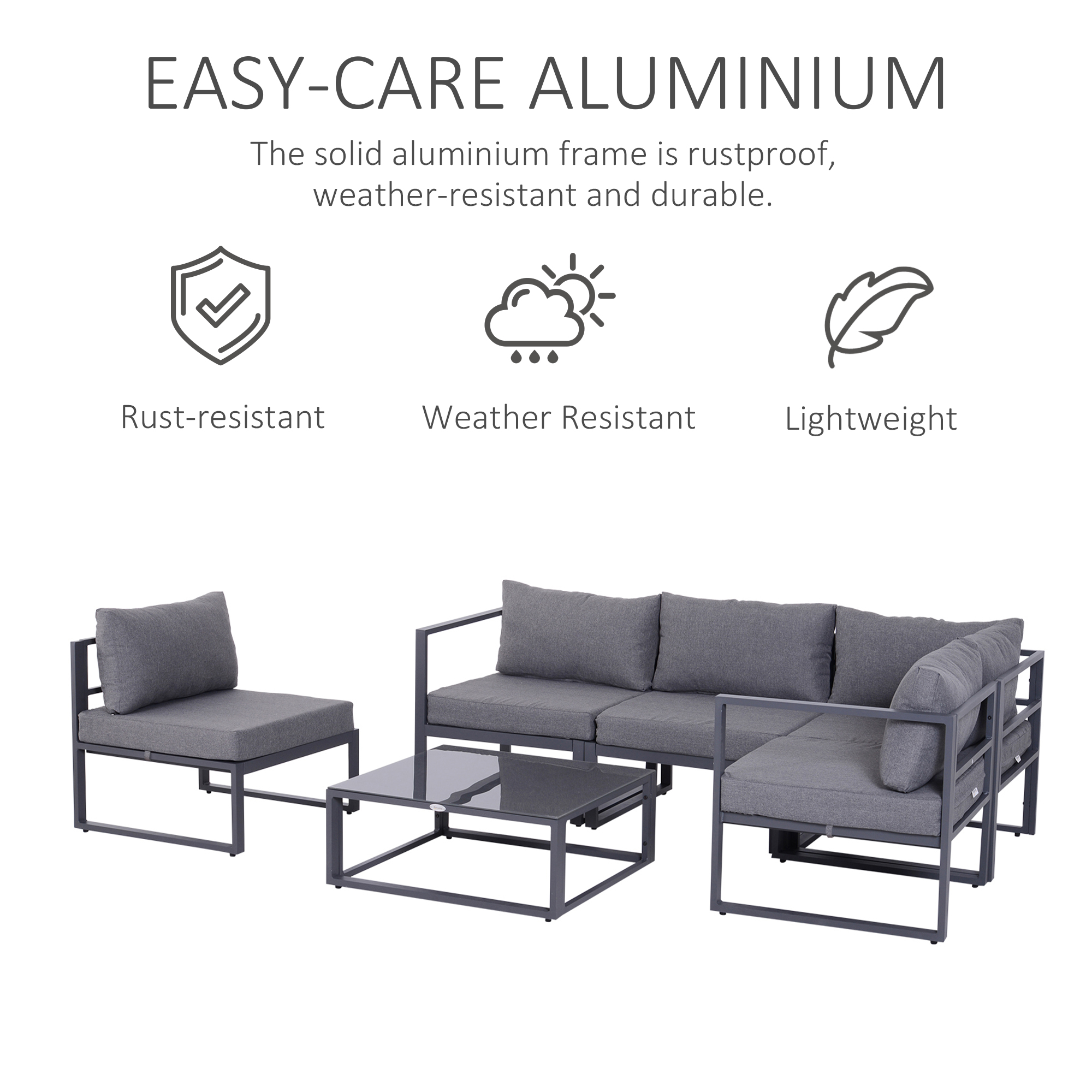 Stylish and extremely comfortable, this six-piece garden sofa set from Outsunny has it all. The set is made up of three corner seats, two middle seats and a matching table to set up however you wish, with all pieces made with a powder-coated aluminium frame for long-lasting use and strength. Plush padded cushions on the seats ensure all day comfort and the covers can be taken off and washed to keep them fresh all-year round. With a tempered glass top, the coffee table adds a sleek finishing touch to the set and is easy to clean and look after. A fantastic addition for your garden and outdoor areas, you’ll love inviting friends over to relax all day long with you.