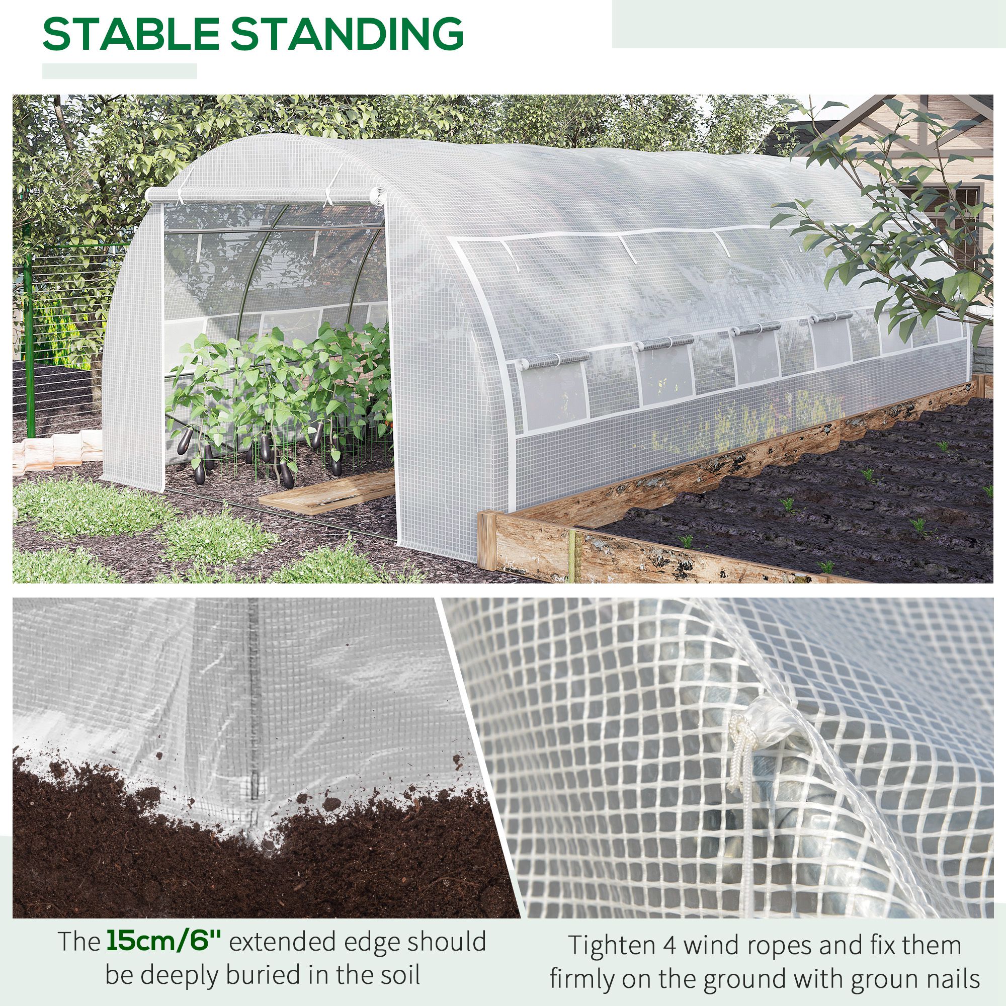 - 15cm extended edges to bury into soil