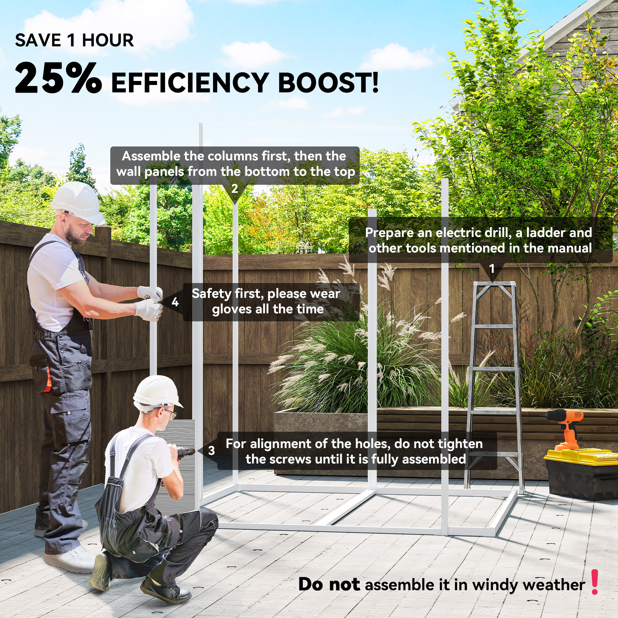 Discover the spacious Outsunny Outdoor Shed, a haven for your garden tools and outdoor essentials. Crafted from 12 mm thick polypropylene resin and reinforced with aluminium, it's waterproof, UV-resistant and stylishly designed to withstand the elements. The included floor keeps rainwater at bay, while a clear window and dual vents ensure your outdoor storage shed is always bright and airy.