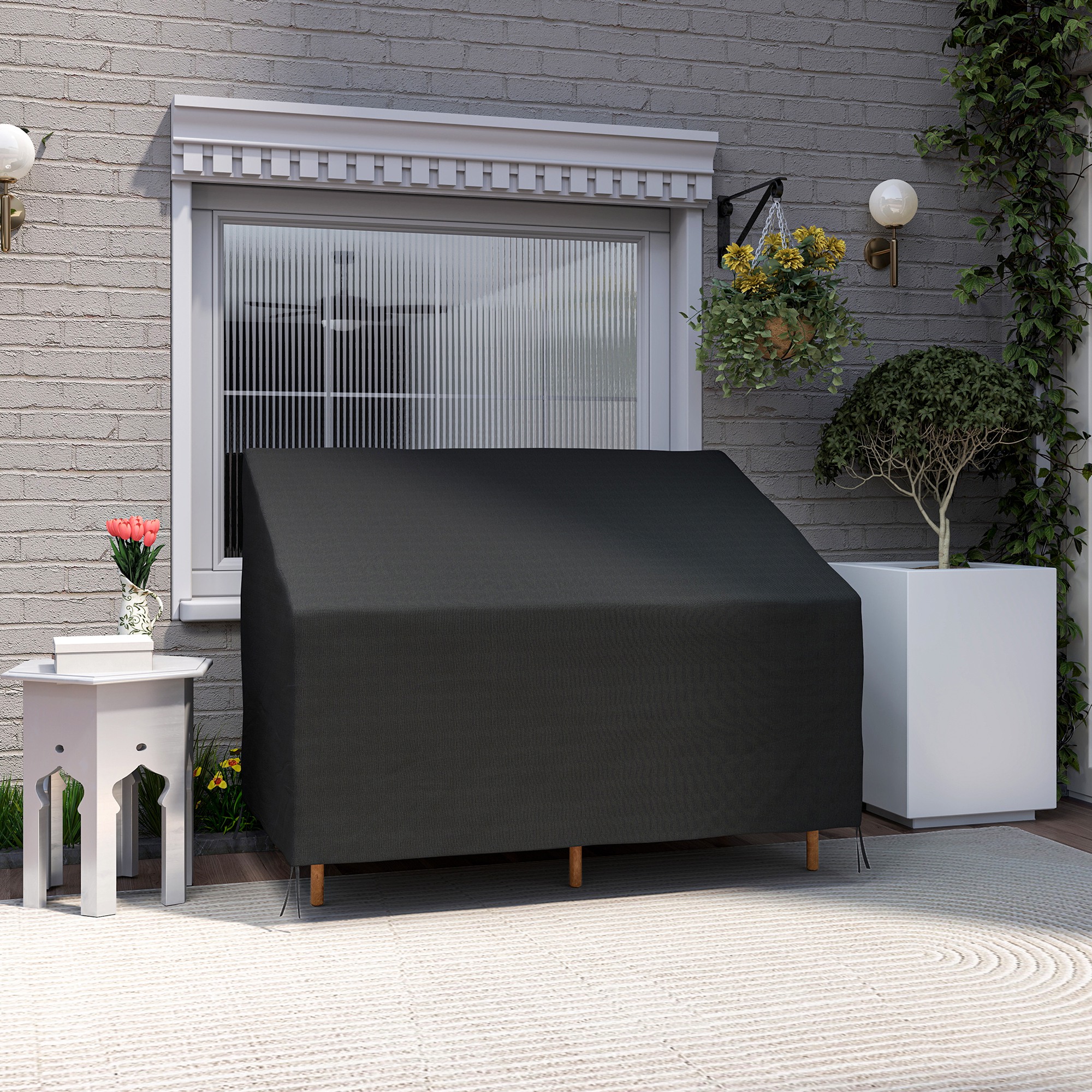 This classic Patio Furniture Cover from Outsunny is designed to keep your two-seat sofa set looking great. Made from high grade oxford cloth, our patio furniture covers can resist cracking, fading, tearing and mould. The fabric is coated with PVC for increased water resistance and further protection from the elements. Because of its waterproof function, it is easy to be cleaned with a piece of wet cloth. Add it to your chairs for better furniture protection.