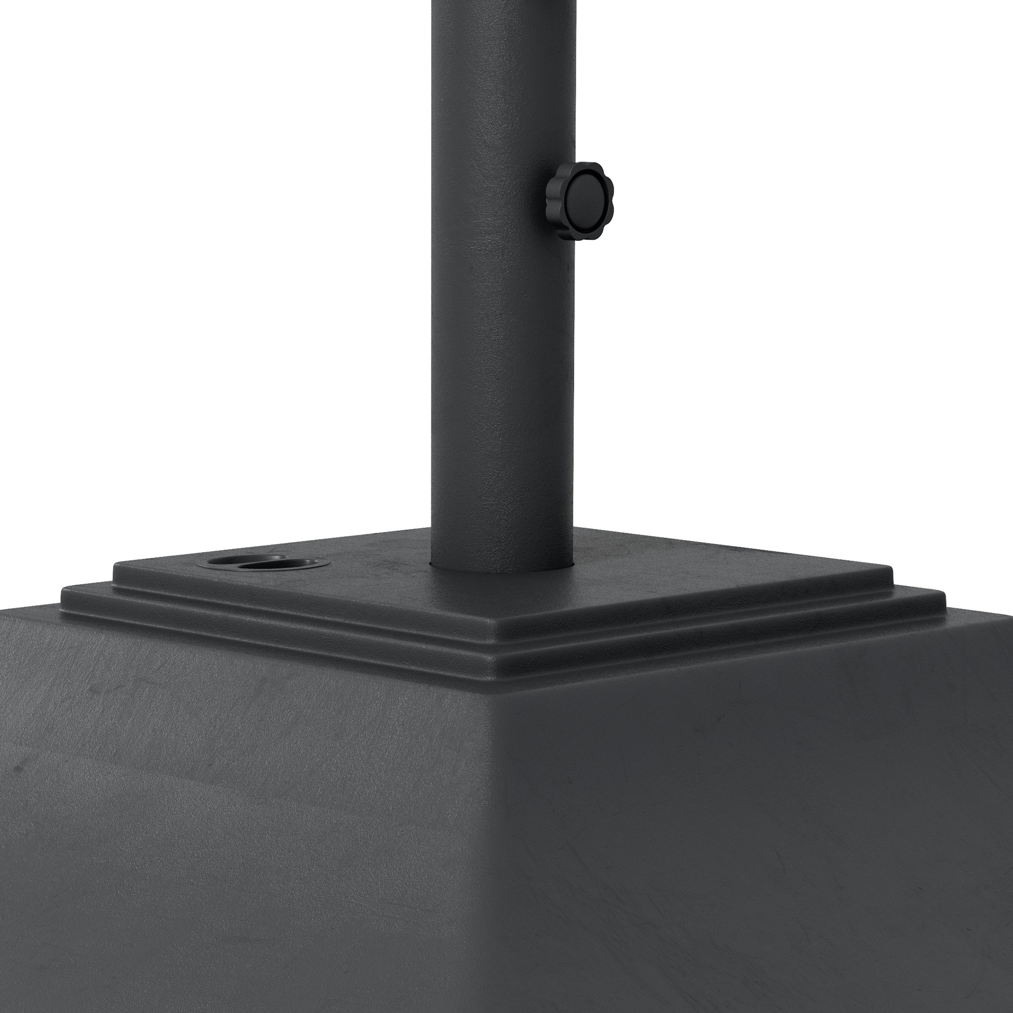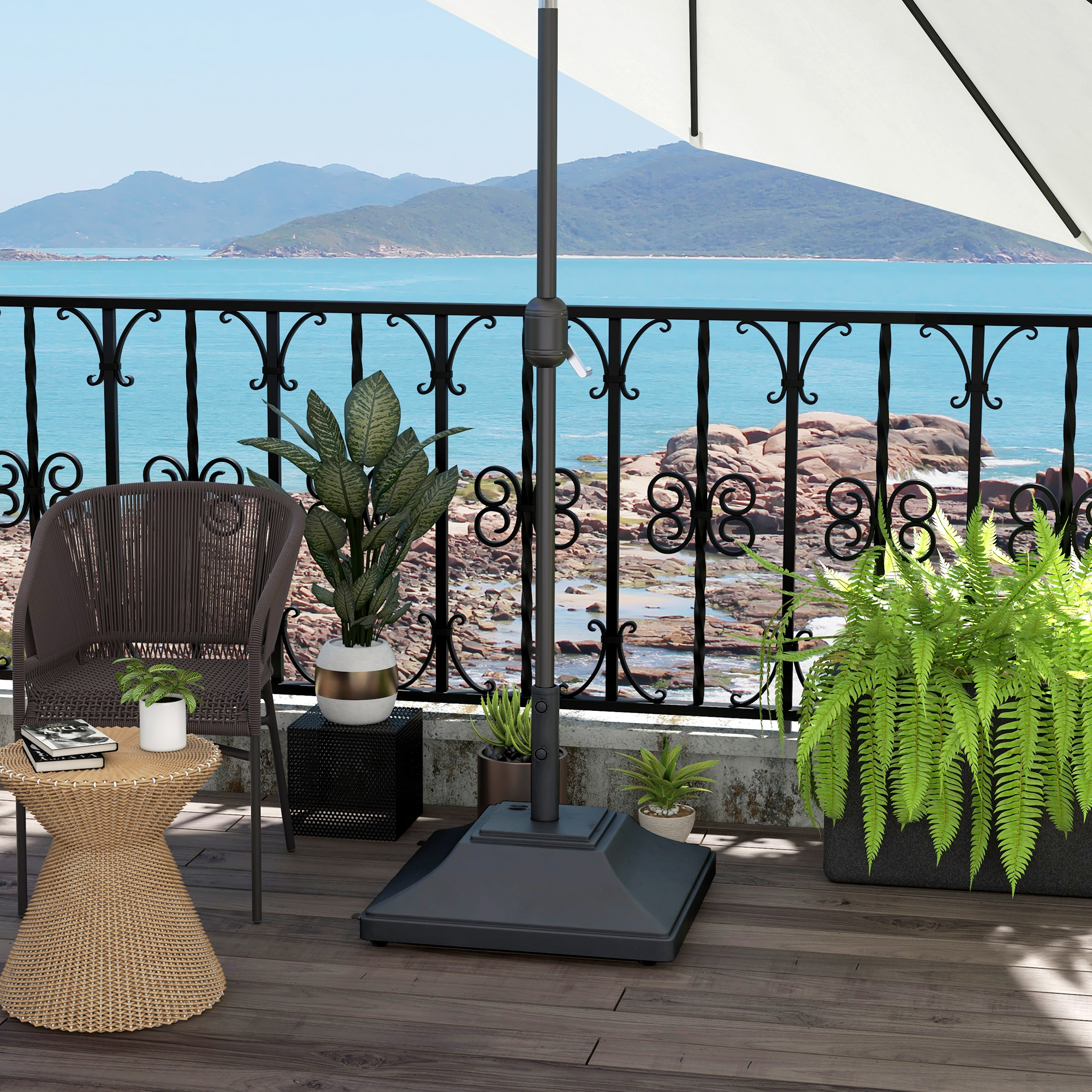 Keep parasol umbrellas firmly held in place: look to this Outsunny patio umbrella base. Made from strong HDPE plastic, this is durable piece, resistant to light wear-and-tear. It's fitted with four wheels to roll easily when full. Fill with 45kg water or 60kg sand for plenty of weight. A powder coated steel pole for the parasol, complete with tightening screws to secure in place.