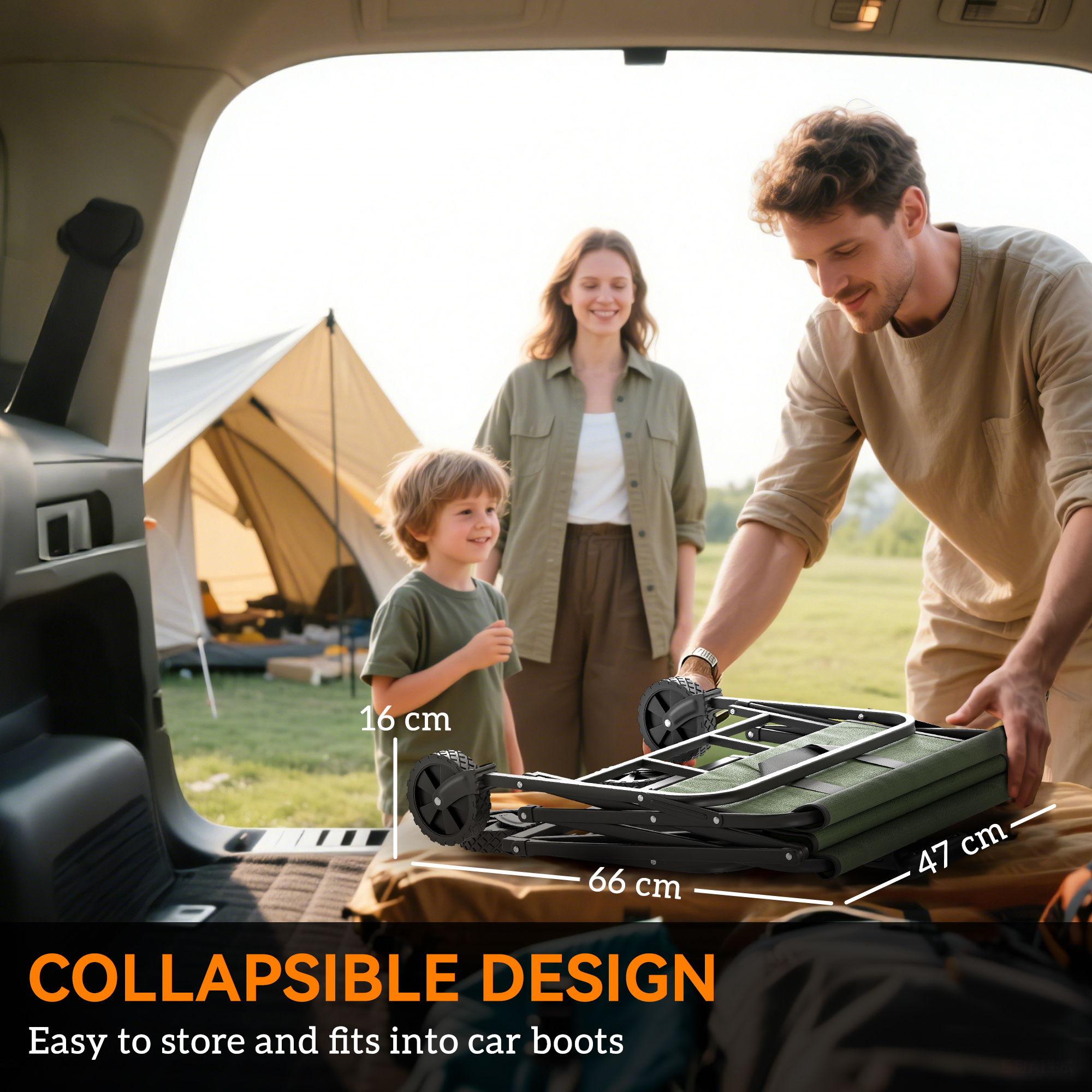 - Folded Dimensions: 62L x 47W x 15H cm