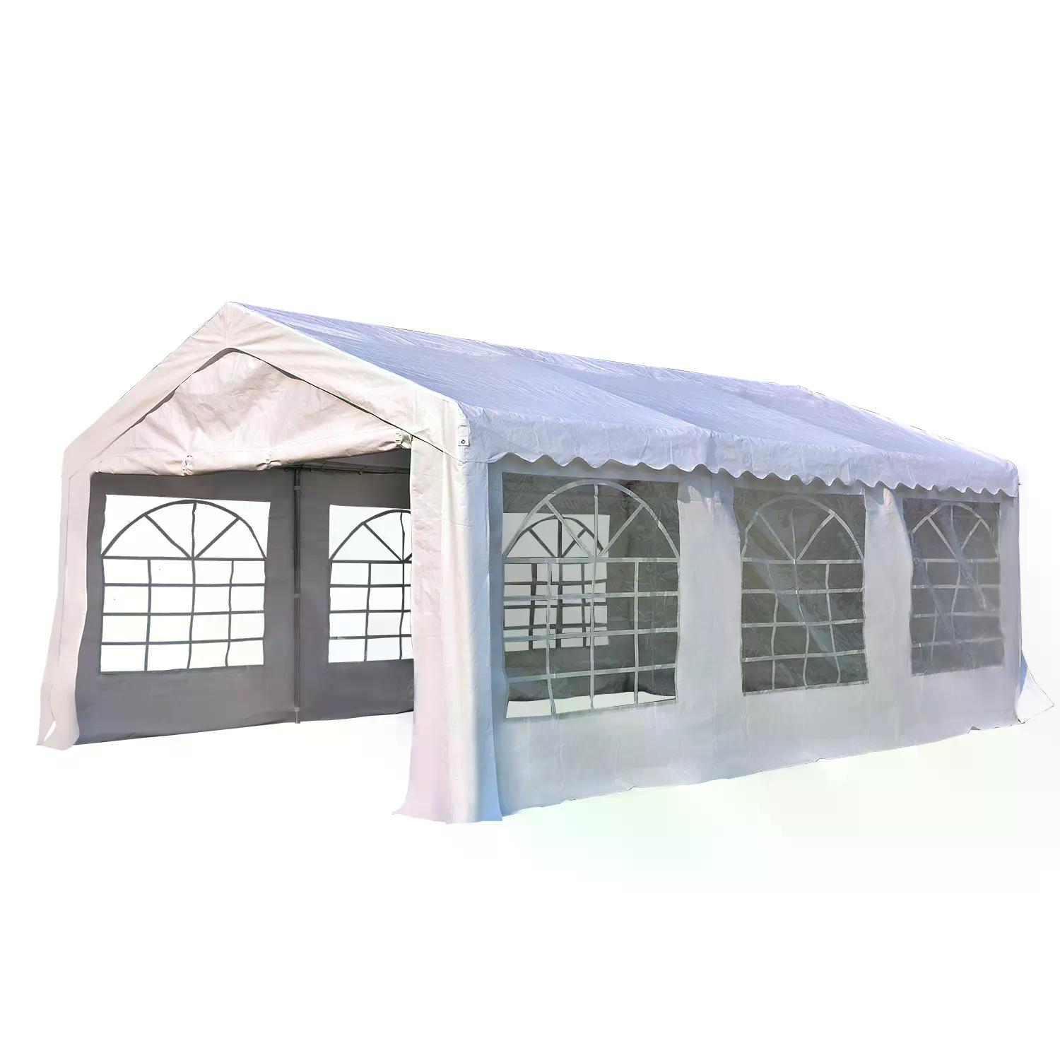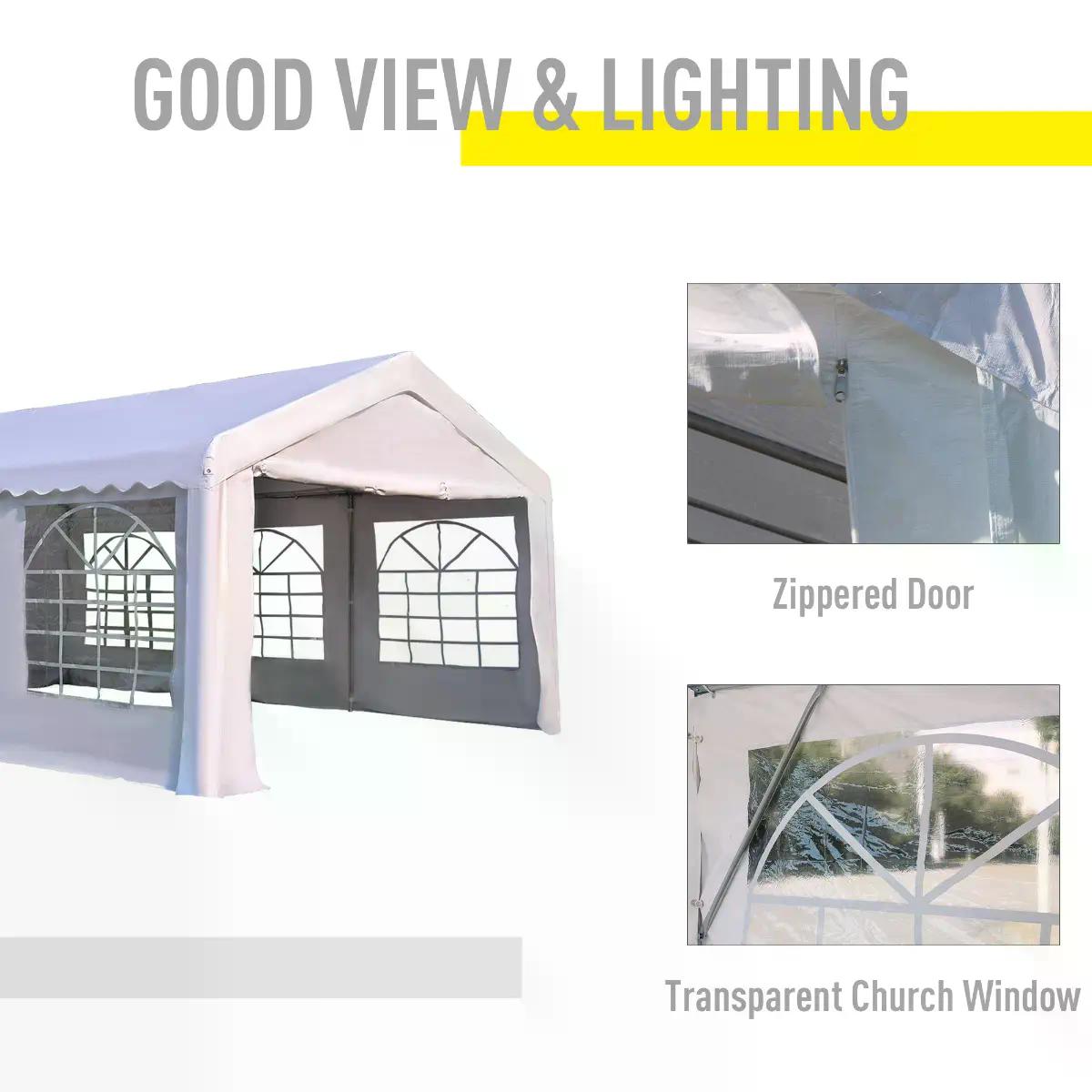 - Double zipper doors on both ends to allow for access from either end. • There are 6 pcs transparent PVC church windows for maximum light and viewing