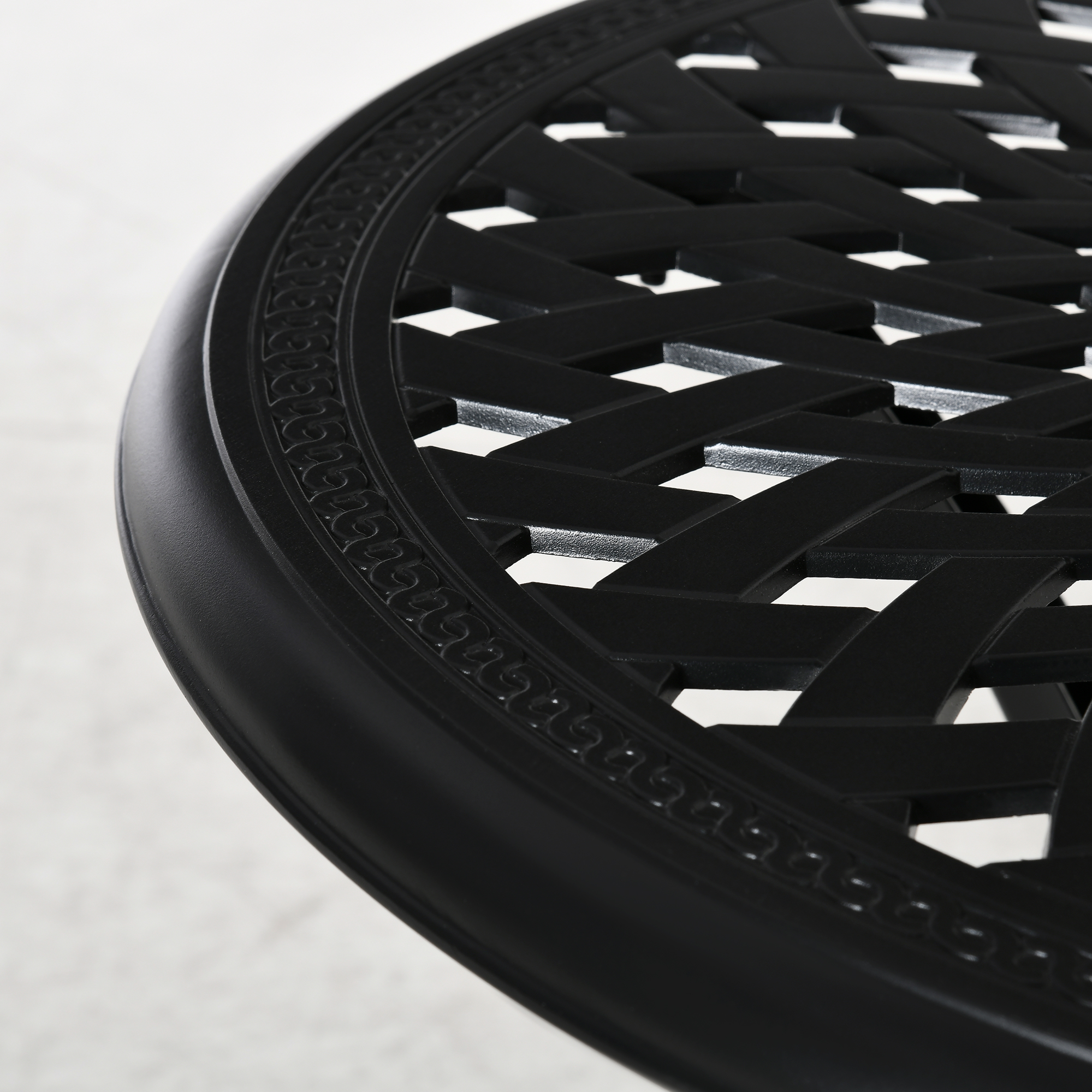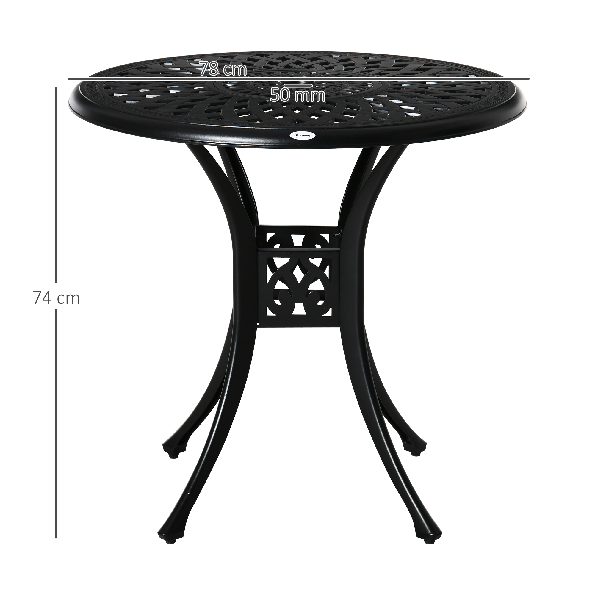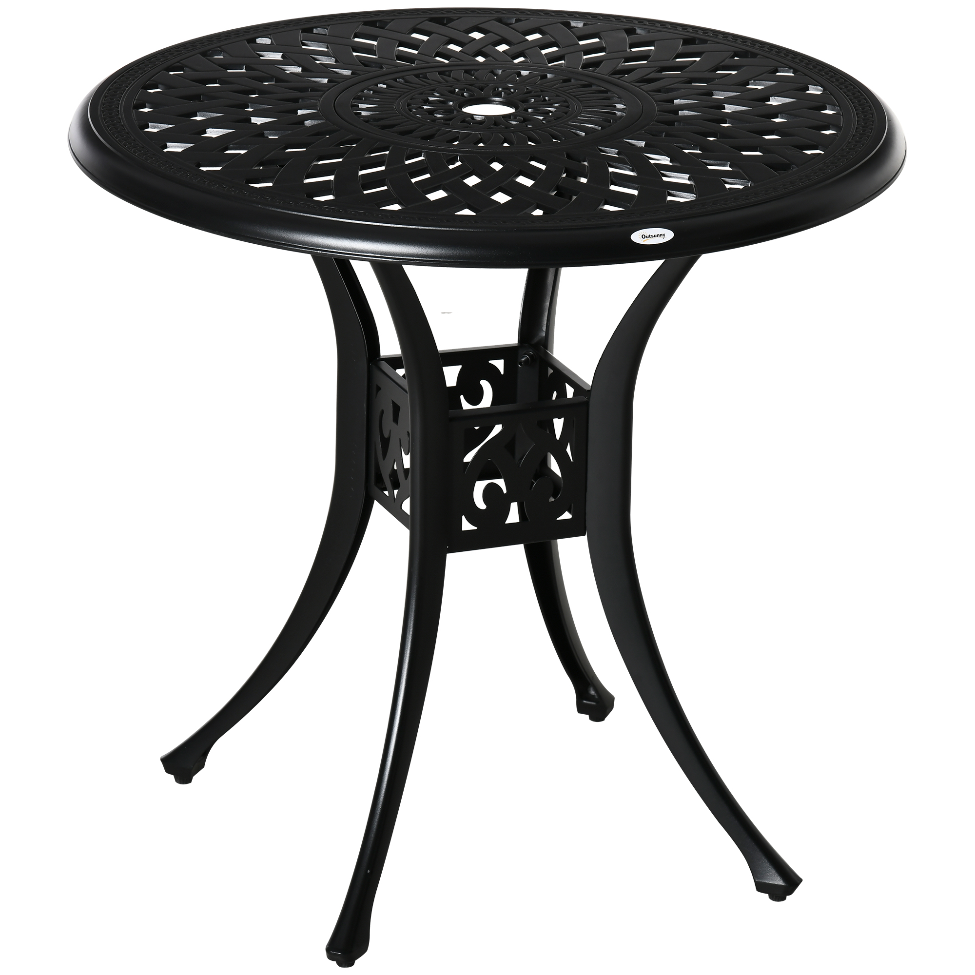 A handy holding spot, which also brings style into your garden and outdoor areas: this round bistro table from Outsunny. Cast aluminium is tough, with a powder coating for extra strength and protection. It's crafted into cut-out design for something a little bit different-great for those who like to make an impression. A middle hold is for holding a parasol umbrella to keep you shaded. To complete, pair with bistro chairs, so everyone can gather round.