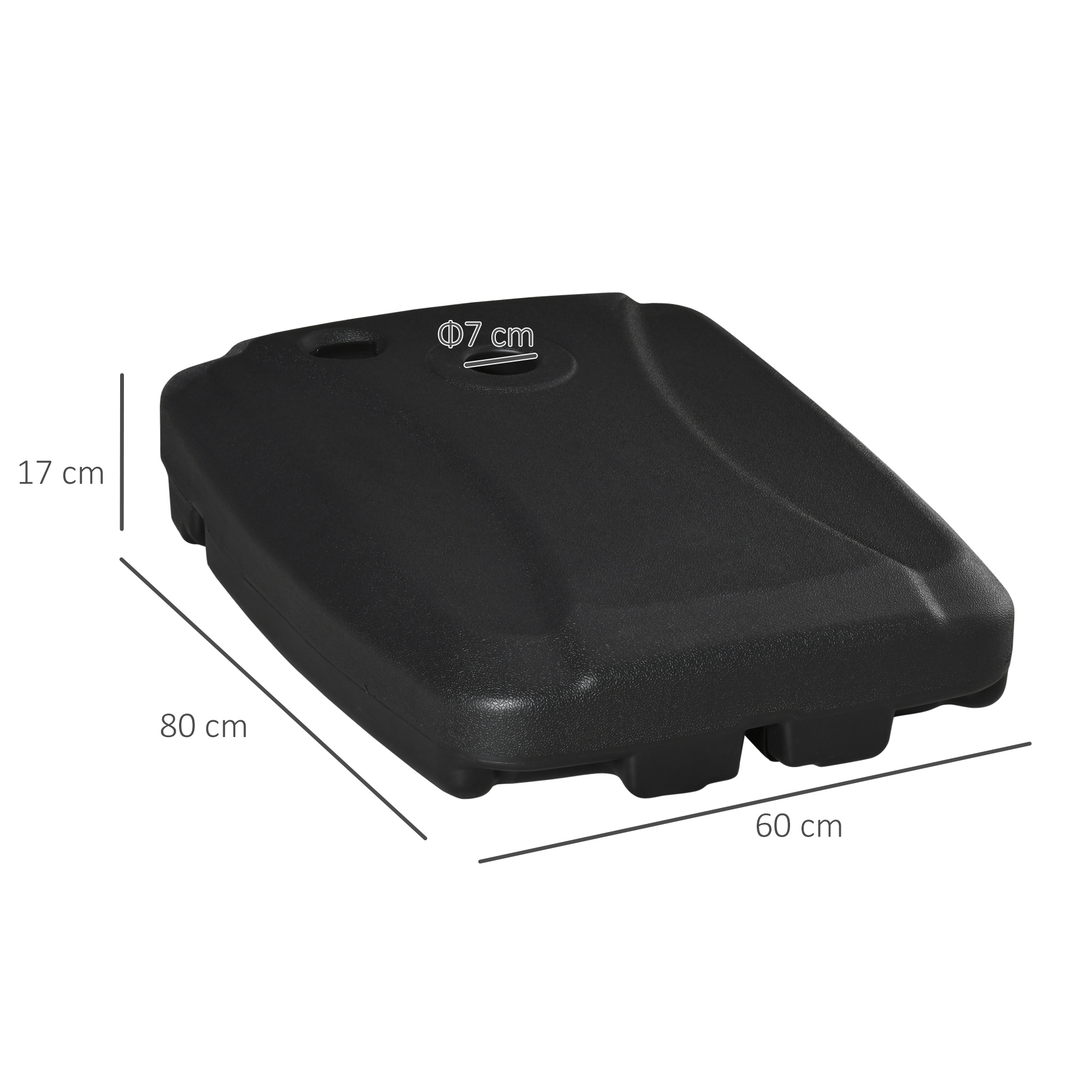 Ensure your Cantilever parasol is always held firmly in place with this garden parasol base from Outsunny. Made from strong HDPE plastic, it's a strong and durable piece, fitted with two wheels to roll easily when full. Fill it with 60kg water, 68kg sand, or a 75kg water/sand combination to ensure it keeps the umbrella standing steady. Whether it's for the garden, patio - or small café - this will ensure the parasol will be kept upright for as long as you need.