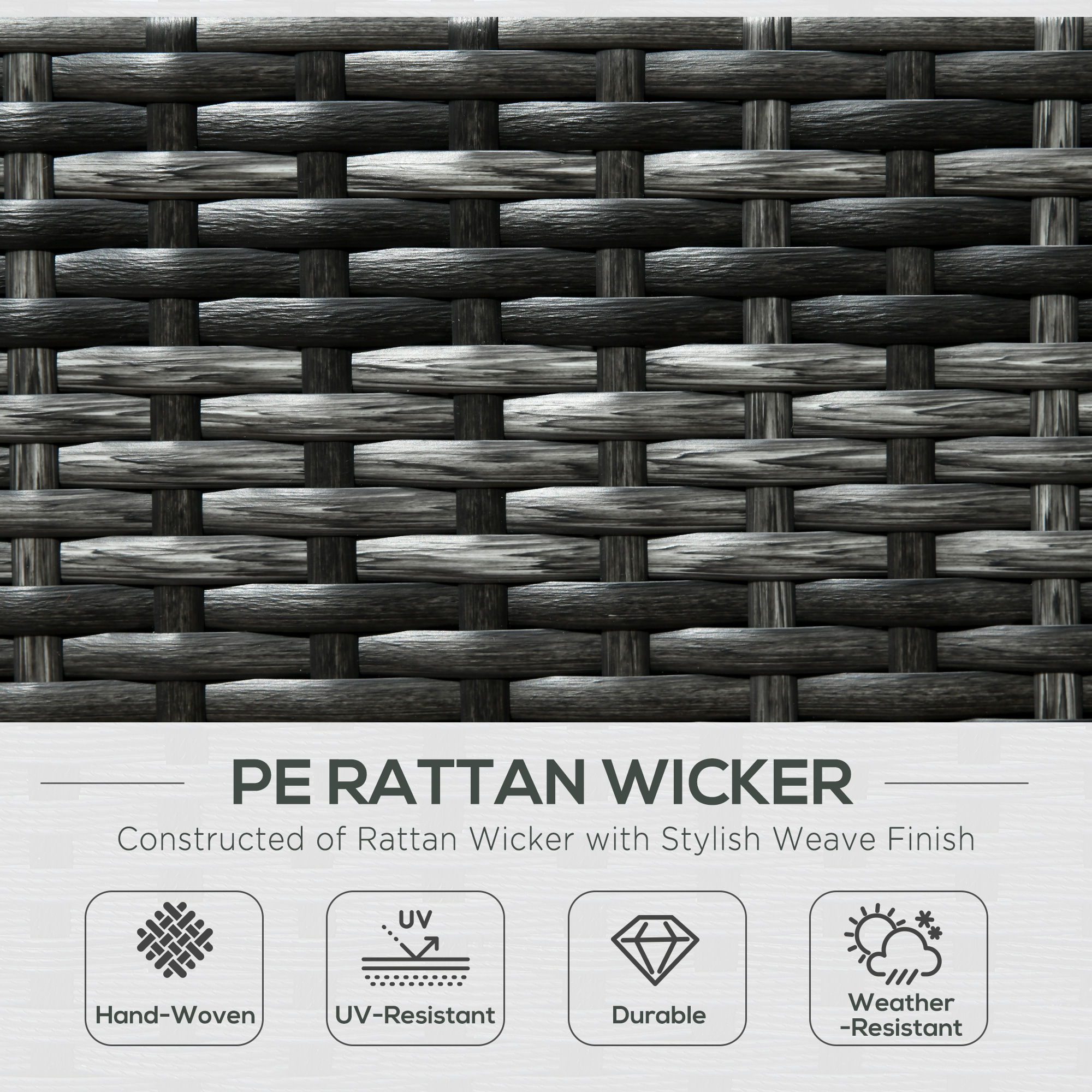 - Material Used: PE rattan, Steel frame, Tempered glass