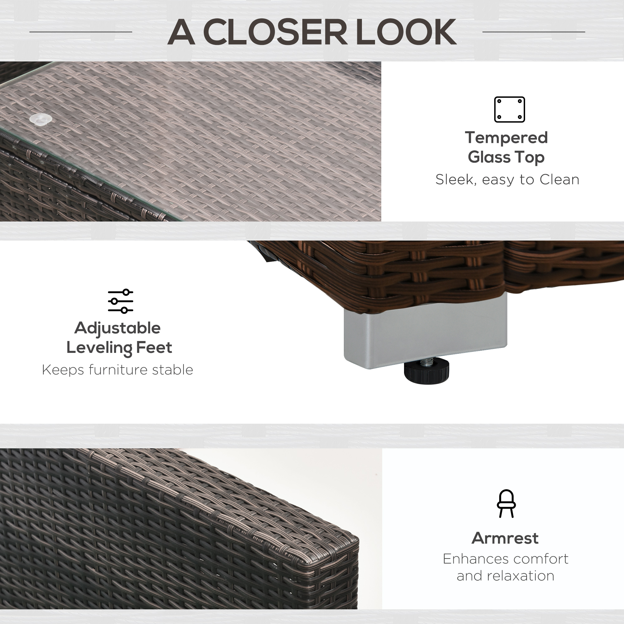 - Material Used: PE rattan, Aluminium frame, Tempered glass