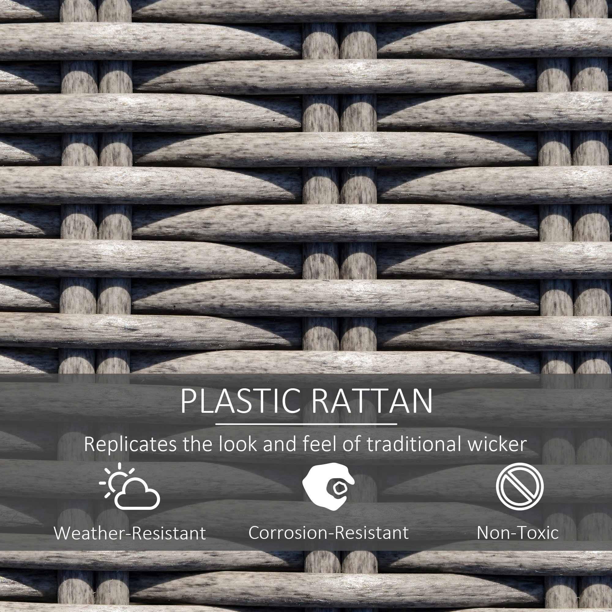 Brighten it with this Outsunny 3pc platic Outdoor Patio Furniture Set and make the outside of your home just as inviting as the inside! Woven of durable plastic material that replicates the look and feel of traditional wicker but is more resistant to sun, rain, heat and cold outdoor weather condition use. Soft padded seat and back cushion included provide extra comfort, ready to use and low maintenance allows you to enjoy your garden life.