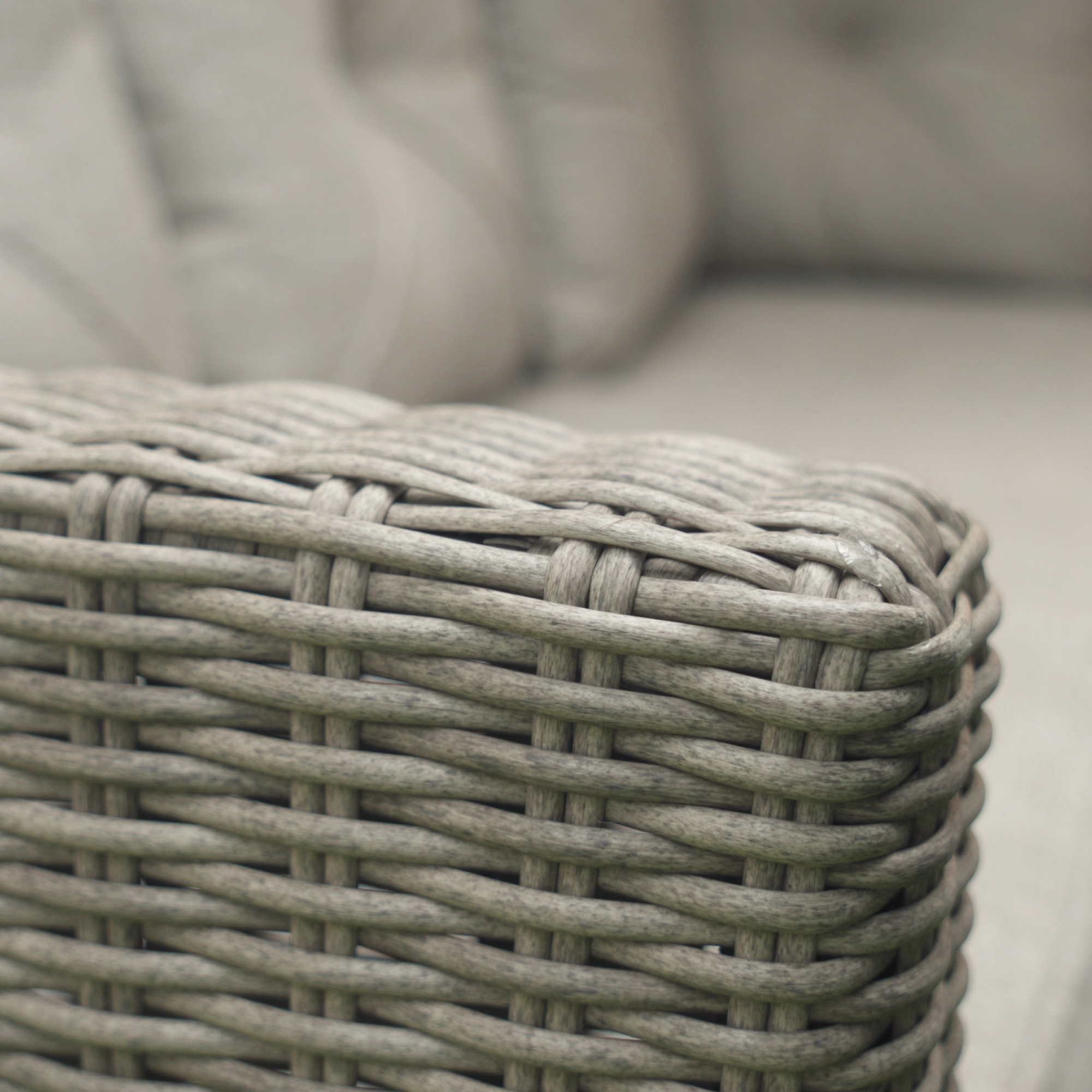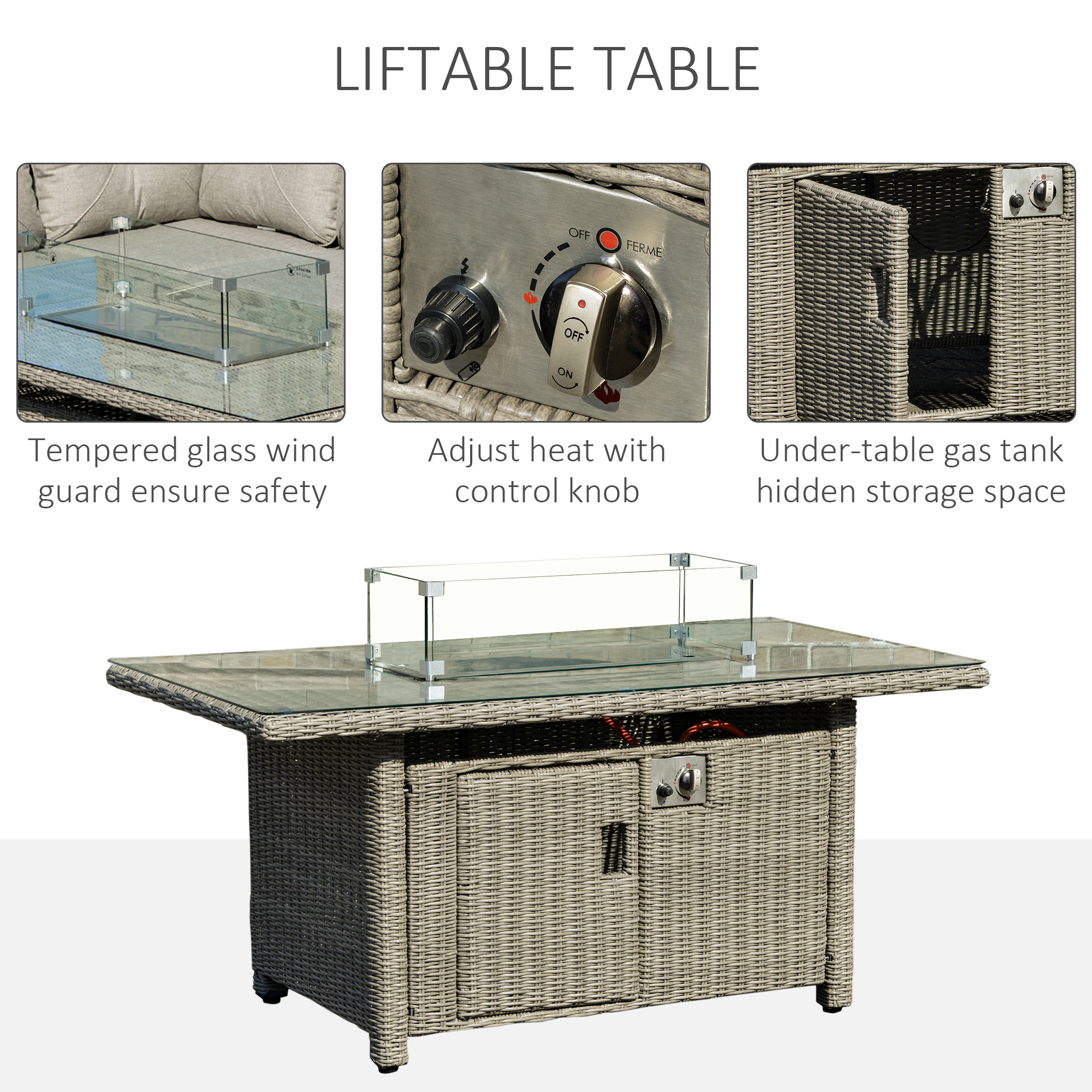 - Set includes two 3-seater sofas, two footstools and a gas fire pit table