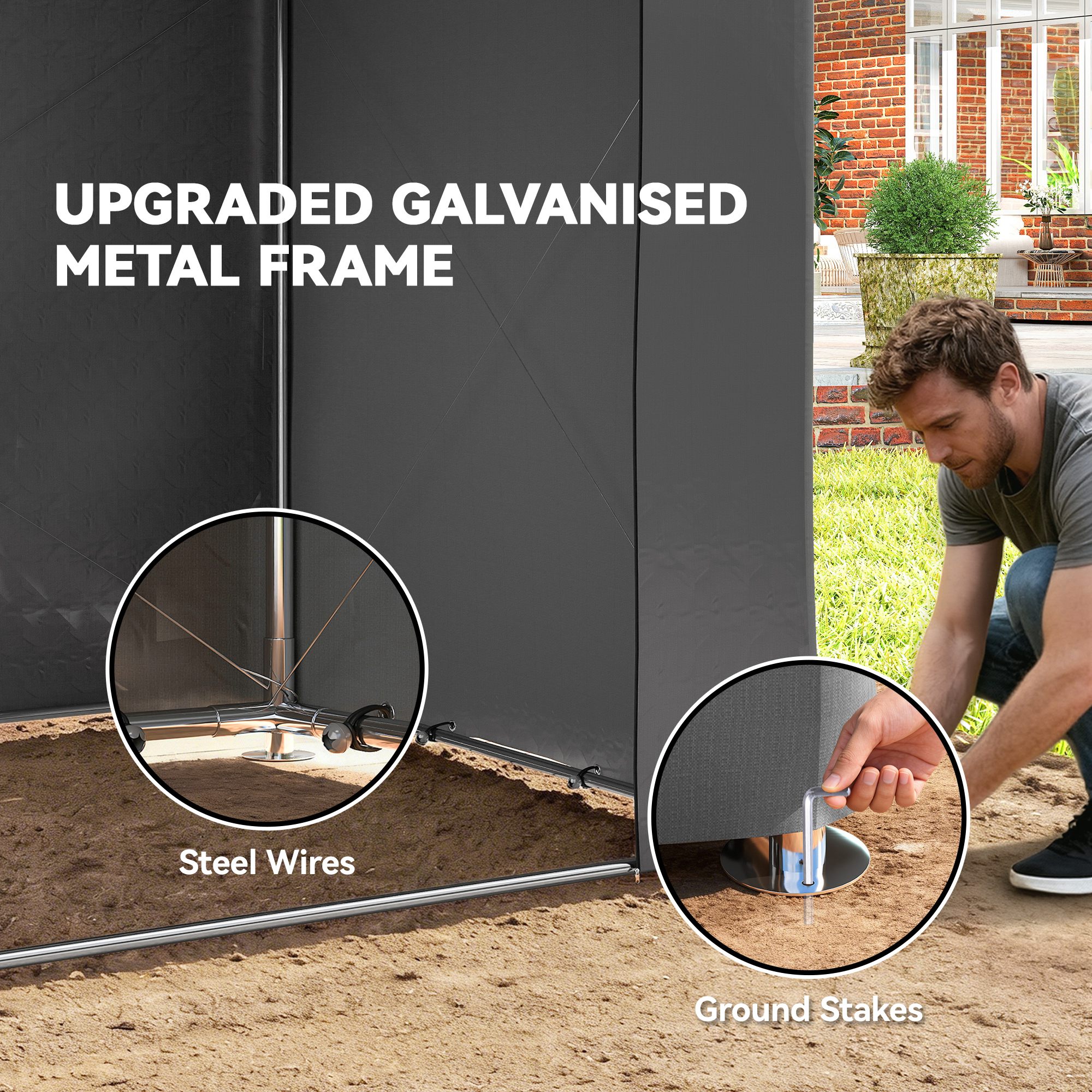 Tired of your garden clutter and the constant worry of rain or harsh winds damaging your bikes? Imagine a disorganized space that detracts from your home's appeal. The Outsunny bike storage tent provides a secure haven. Its robust, weather-resistant build and stable frame offer peace of mind, while the chic, modern design of this outdoor garden storage shed enhances your garden, neatly protecting your belongings without sacrificing style.