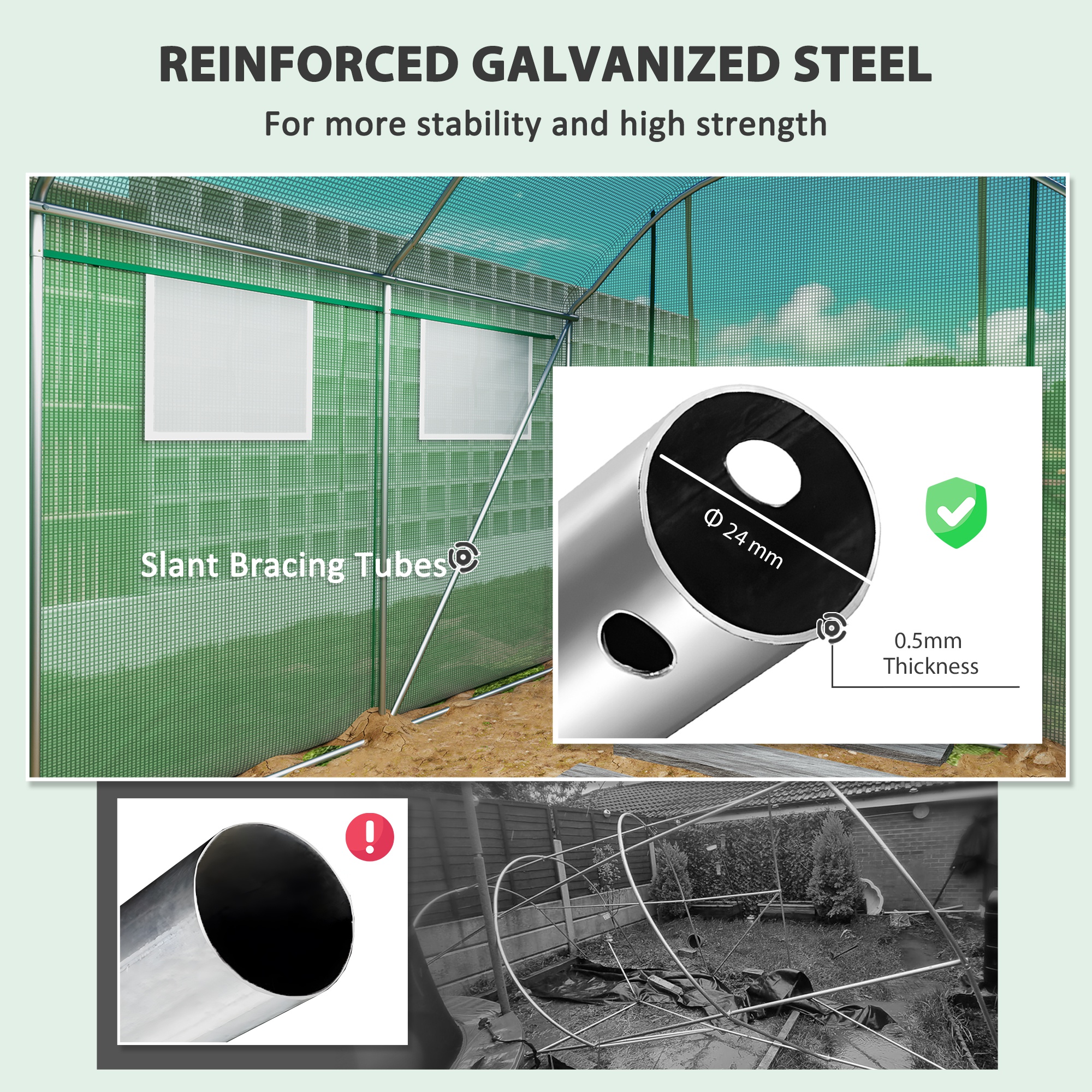 - Material: 140 gsm PE, Galvanised Steel