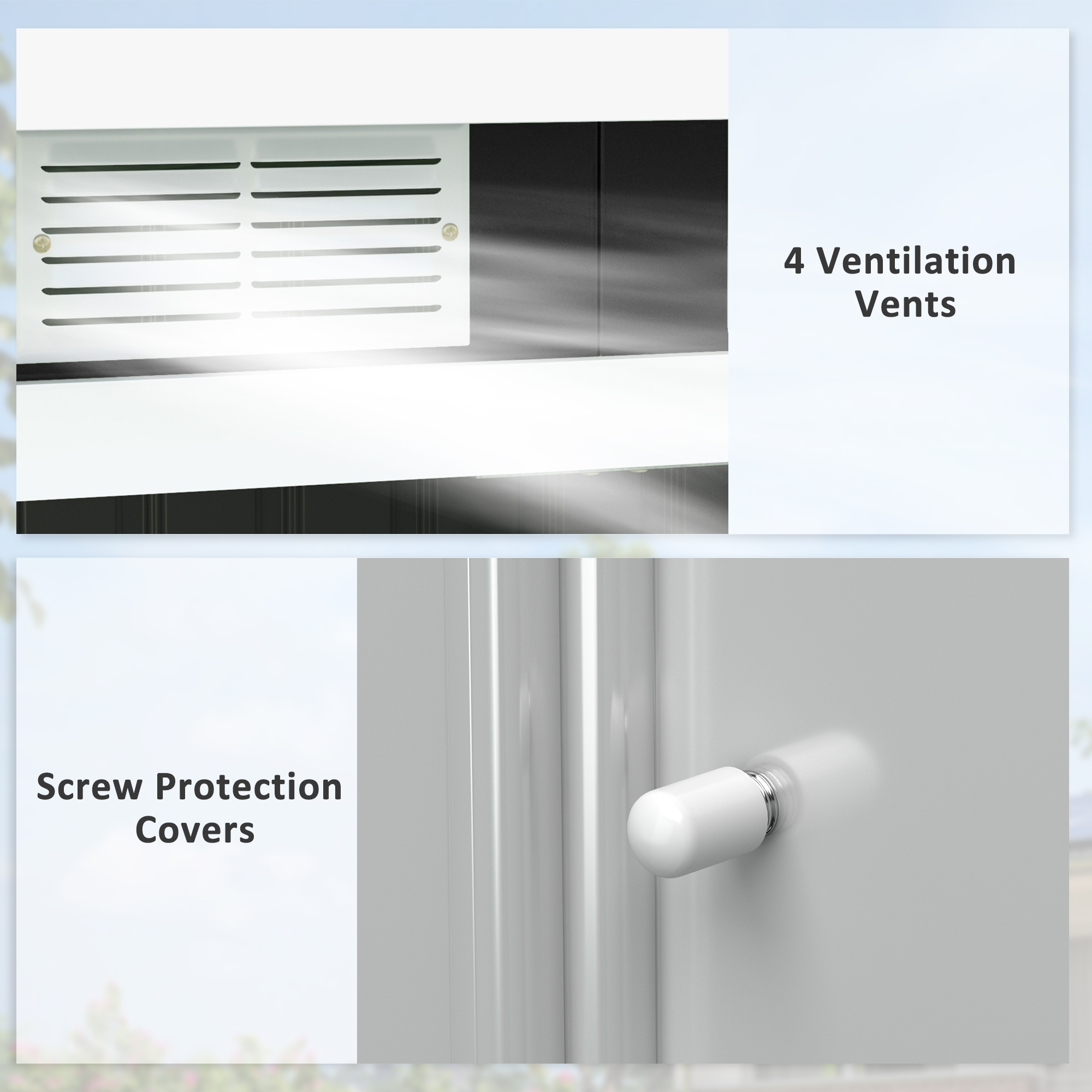 This Outsunny garden tool shed is a great for keeping tools and equipment stored together. Made from galvanised steel, the structure is tough, so it's suitable for outdoor use. A sliding double door for easy access in and out. Two ventilation windows allow air to flow inside to prevent mold and humidity. A foundation kit is also included, so you have everything you need for installing this outdoor shed.