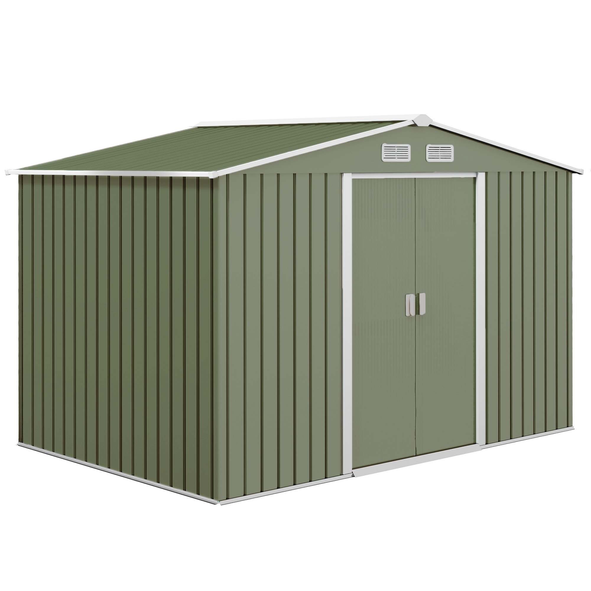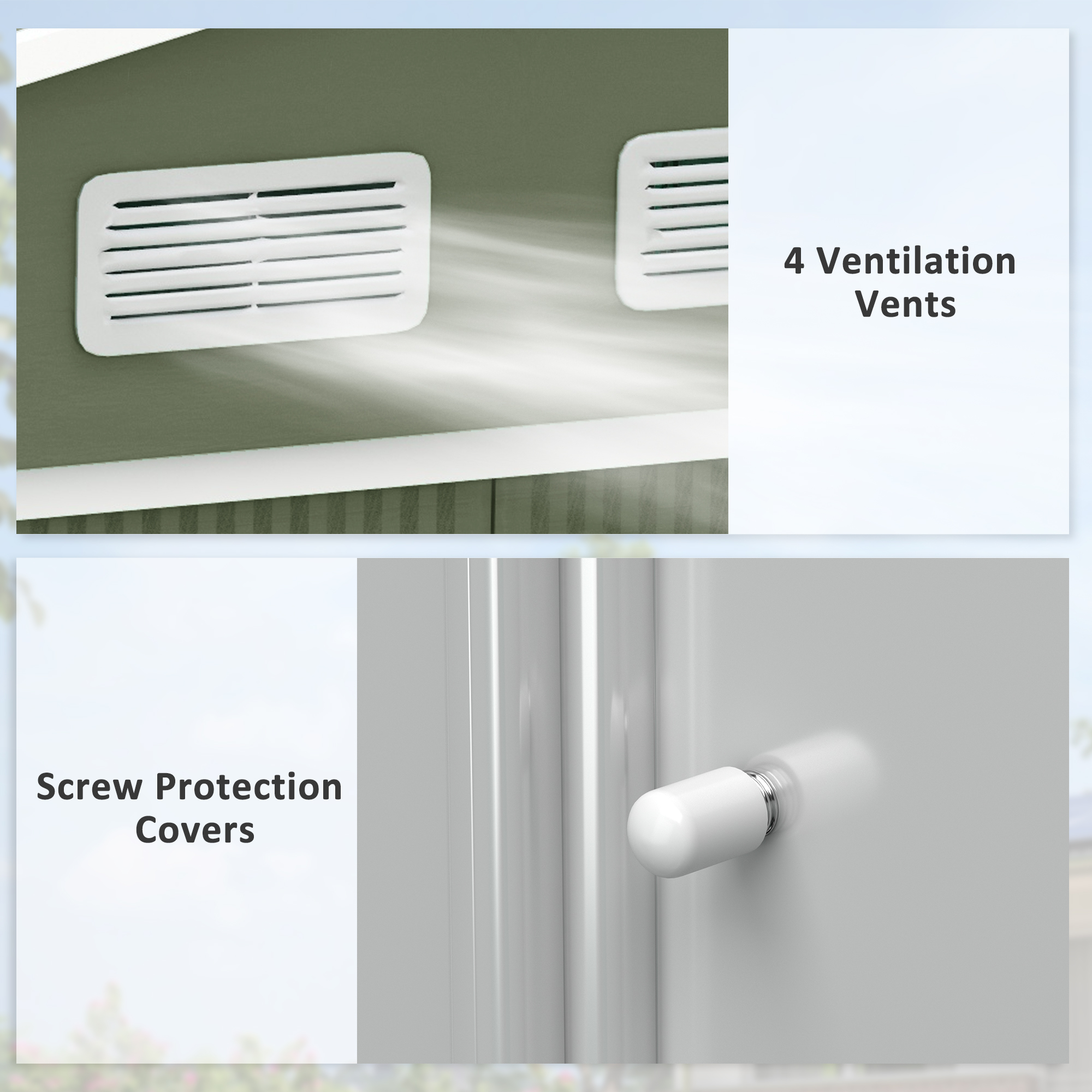 Keep your garden equipment and outdoor essentials locked away securely with this metal shed from Outsunny. Built from galvanised steel for strength, it comes with a lockable double sliding door on the front for easy access and four vents for air to circulate and prevent moisture buildup. The garden tool shed is finished with a protective weather coating and a foundation kit for it to stand level on the ground.