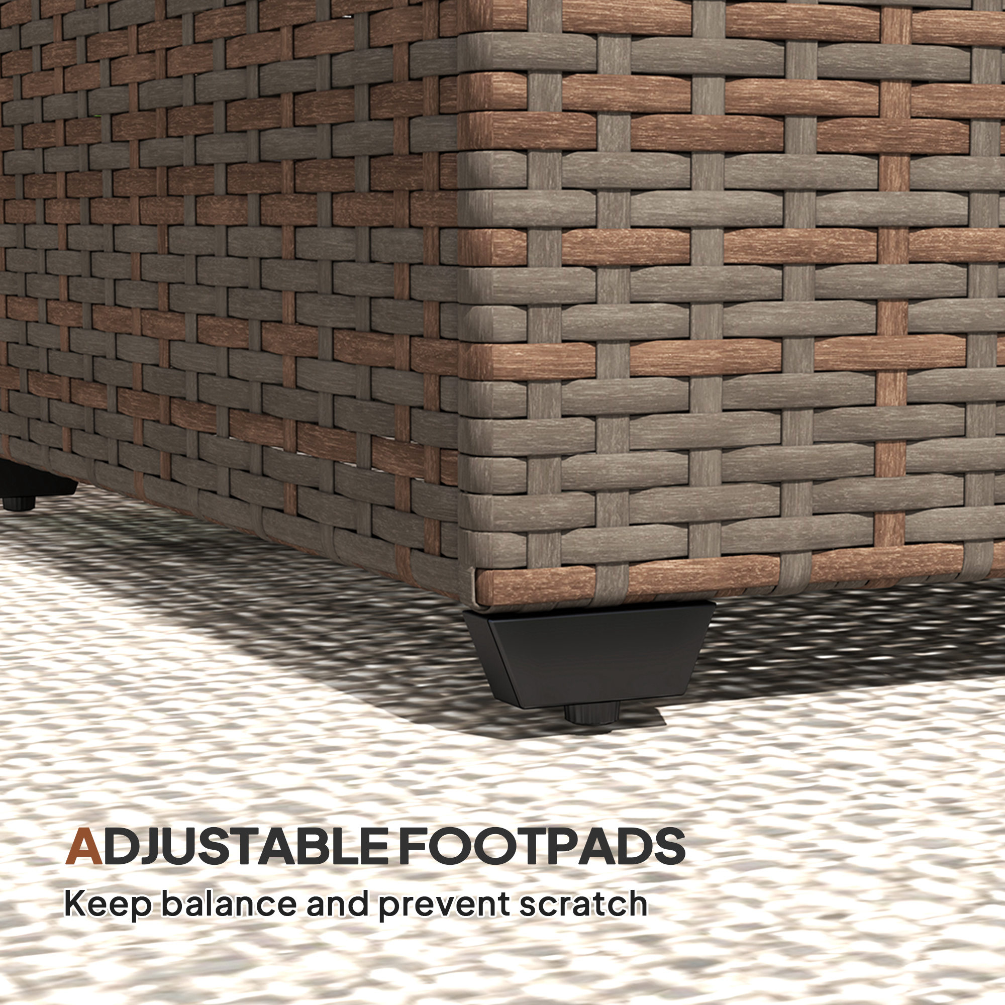 Forever style for your garden with this Outsunny rattan garden table. A galvanised steel frame with powder coating for a strong core structure; wrapped in tough plastic rattan, the garden side table effortlessly matches your current rattan garden furniture. It's fitted with a 5mm thick tempered top for a sleek touch and a safe holding place. Complete with adjustable feet for stability.